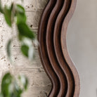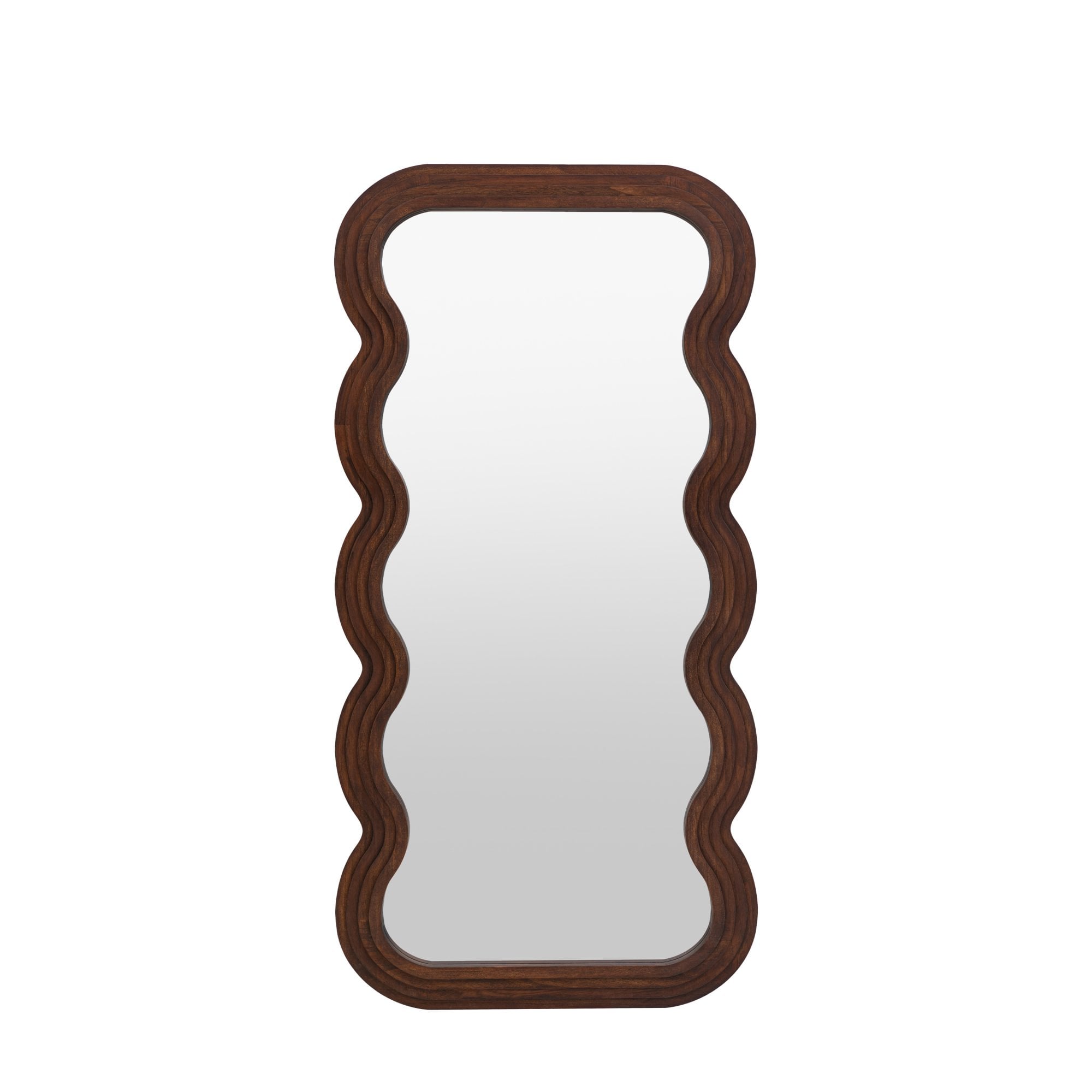 Transform your room with our stunning brown wooden leaner mirror, a perfect blend of timeless charm and modern design. Featuring a distinctive wavy edge, this mirror adds a graceful, fluid touch to your decor. The layered inset frame enhances the mirror's depth and texture, creating a rich, dimensional look. The warm brown wood frame offers natural elegance, making it a striking addition to any space. Leaned against a wall or used as a freestanding feature, this mirror is ideal for living rooms, bedrooms, or hallways, turning everyday reflections into a statement of style and sophistication.