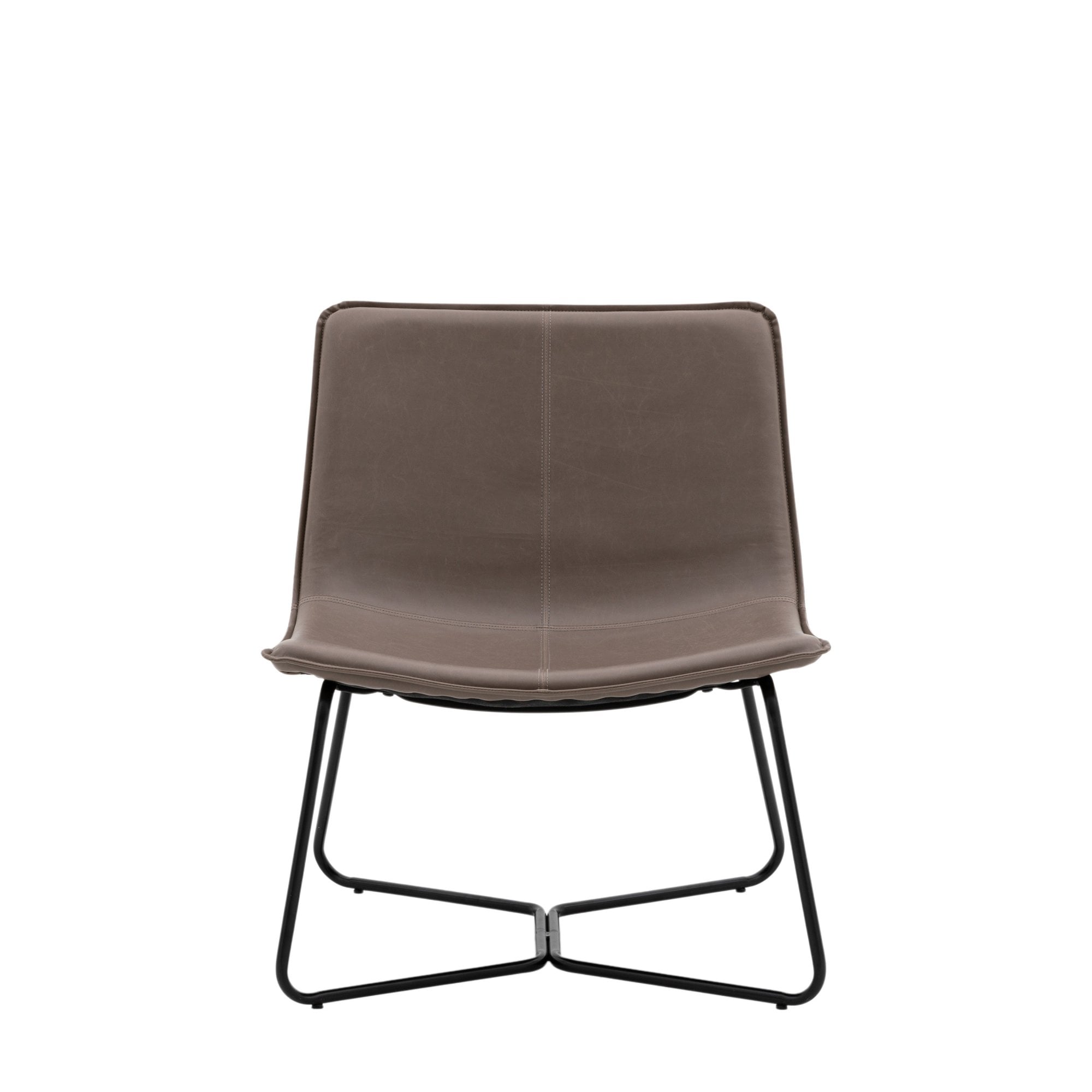 This contemporary occasional chair embodies both comfort and style. Its chic design features a curved seat, upholstered in faux leather, and sleek black metal frame. It is available in two other colours, and matching dining chairs and stools are available.