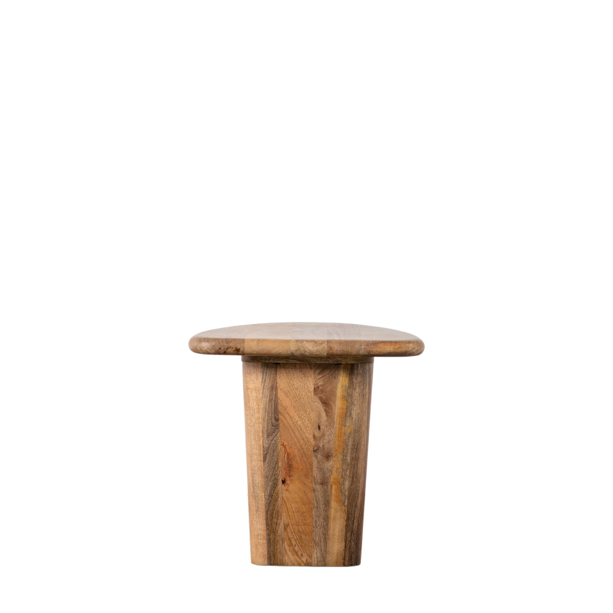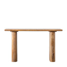 Unusual console table featuring chunky legs and top, with soft flowing curves which soften the look, to create a beautiful sturdy piece. It is crafted from solid mango wood with a natural finish to show the stunning grain of the timber.