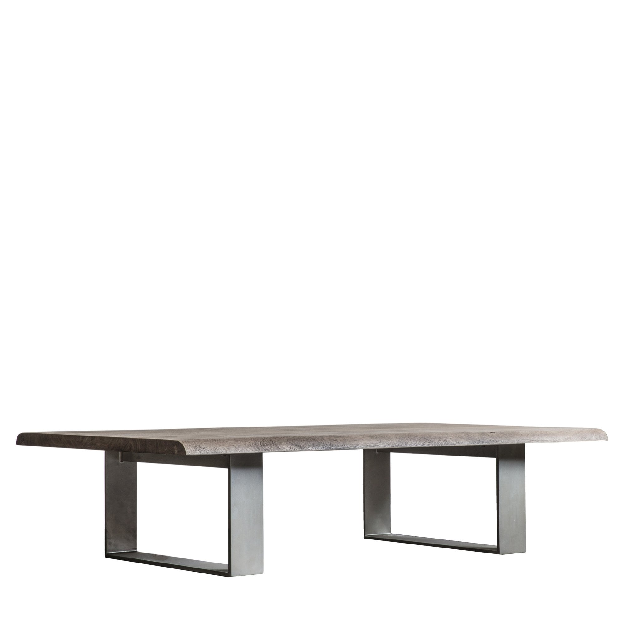 This beautiful coffee table makes a perfect addition to any setting, with its lovely acacia wood top with its waney edge, combined with a silver-colour powder coated iron legs.