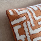 A bold stand out addition to any room, this cushions apricot velvet geometric pattern is highlighted by contrasting embroidery and edge piping. All coming together to truly elevate your space.