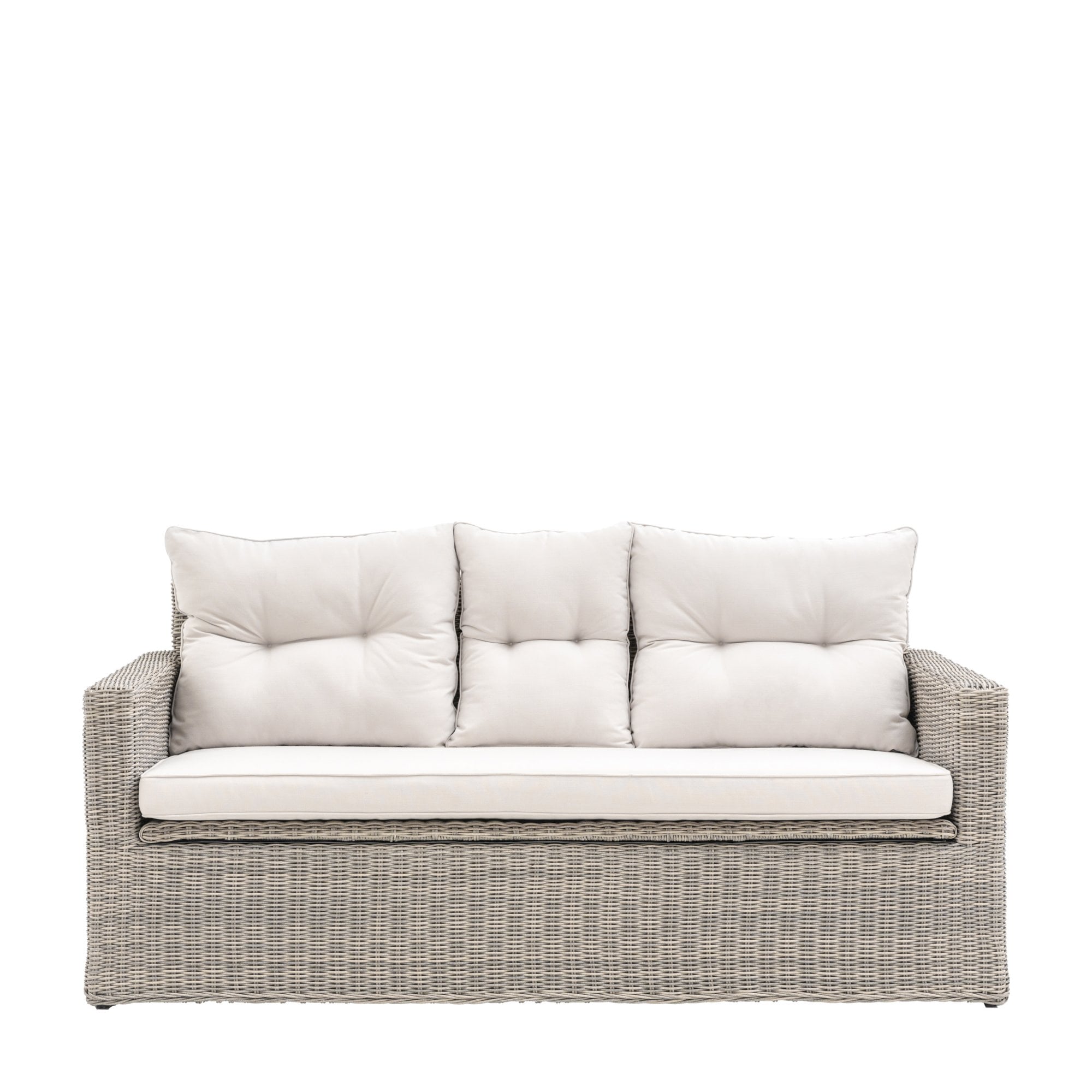 This stylish outdoor sofa offers both comfort and practicality. Crafted with a blend of natural wicker and plush cushions, it provides a relaxing and inviting seating option. The neutral color palette complements any outdoor decor, while the durable construction ensures years of enjoyment. And with under-seated storage, you can keep your outdoor essentials organised and within easy reach.