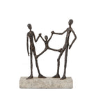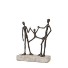 Capturing a joyful family moment, this sculpture adds a unique charm to any room. The abstract family figures in a bronze style resin stand on a grey stone style base.