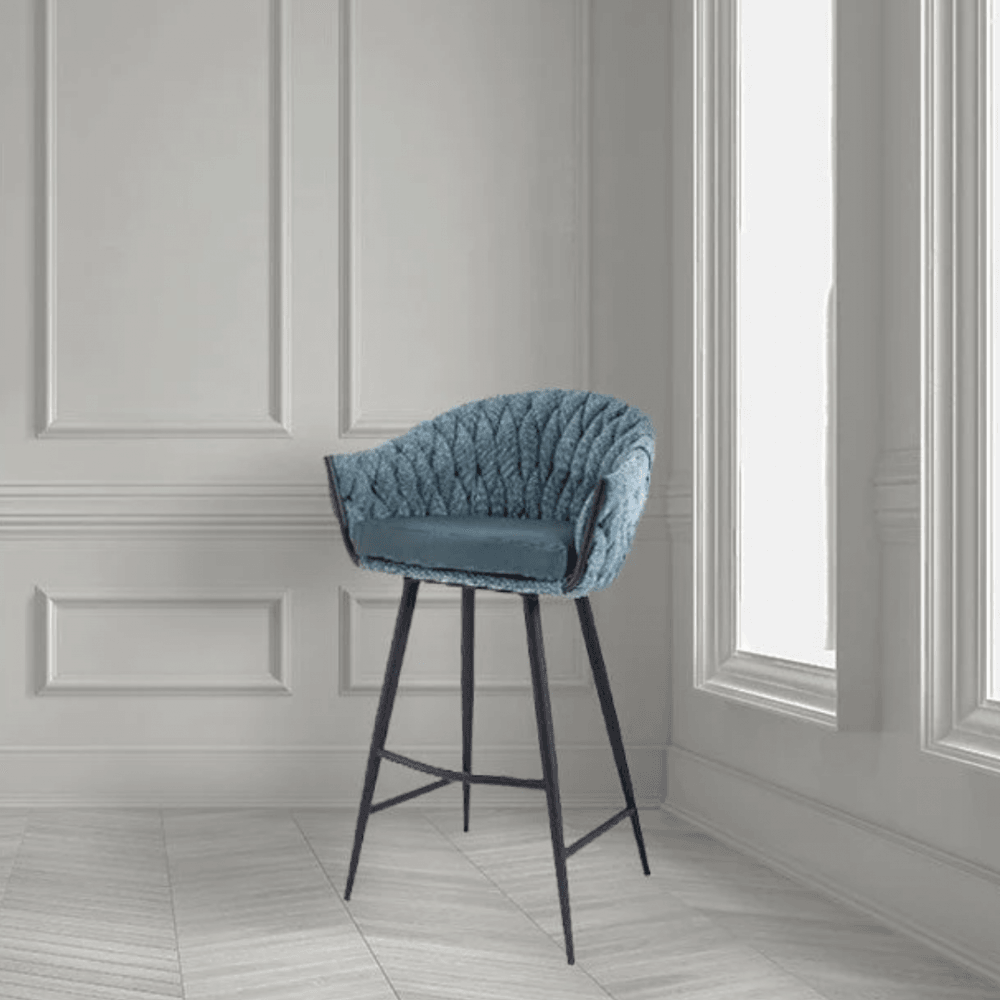 Aquamarine tweed inspired fabric interwoven with faux leather seat and powder coated black matt frame. The Blake barstool is the ultimate in style and comfort! Co-ordinating high table also available, allowing you to create the perfect breakfast nooke.