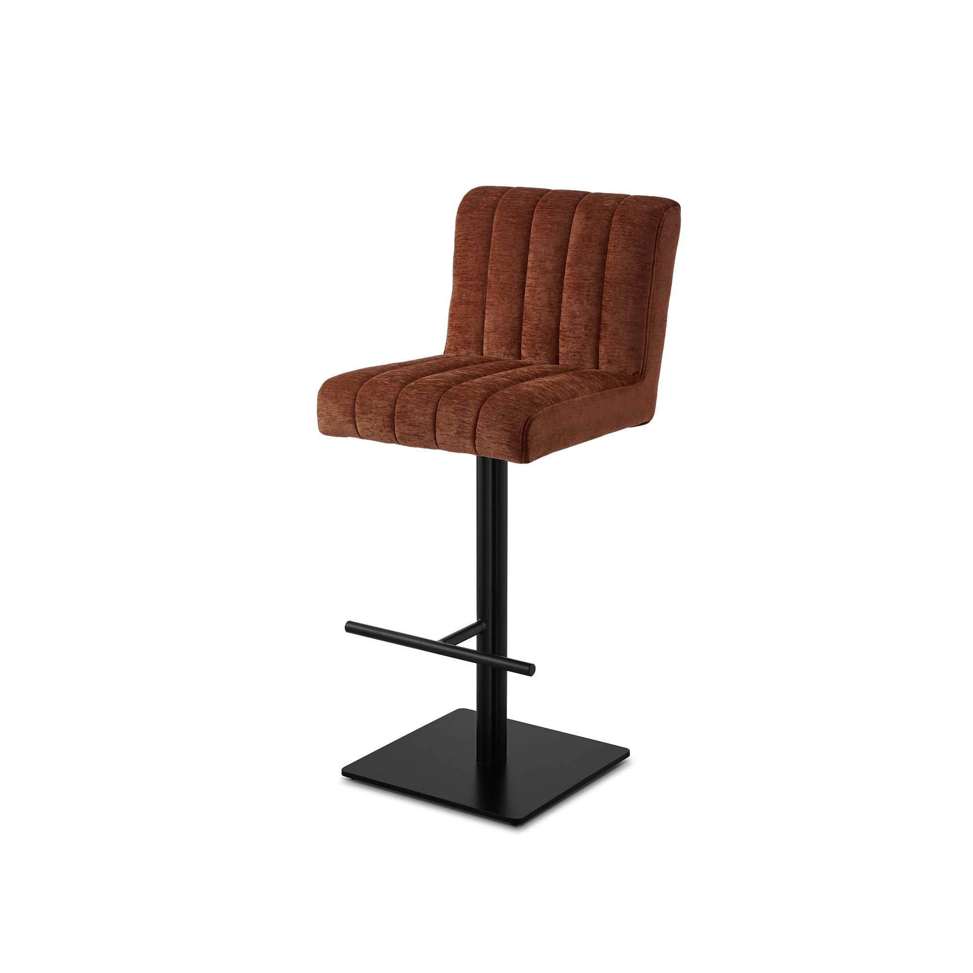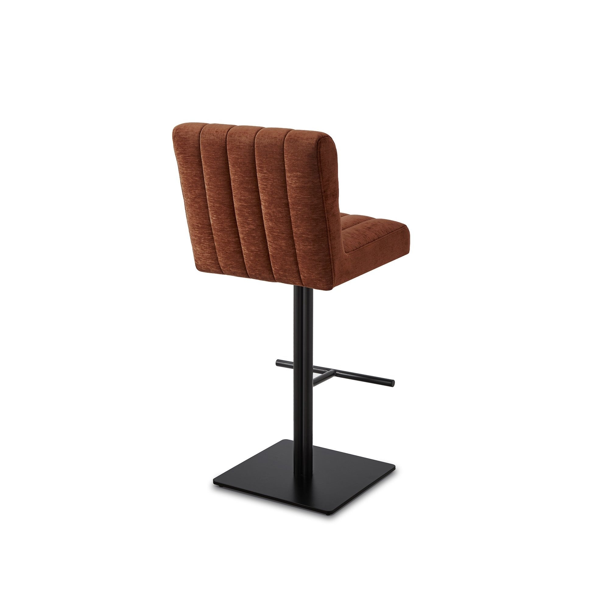 Experience the warm charm of the Dukes Bar Stool in Sysley Rust II chenille fabric, featuring a captivating burnt orange hue. With a supportive backrest and plush upholstery, this stool provides comfort and style. Perfect for casual dining or social gatherings, it seamlessly blends elegance with modern design.