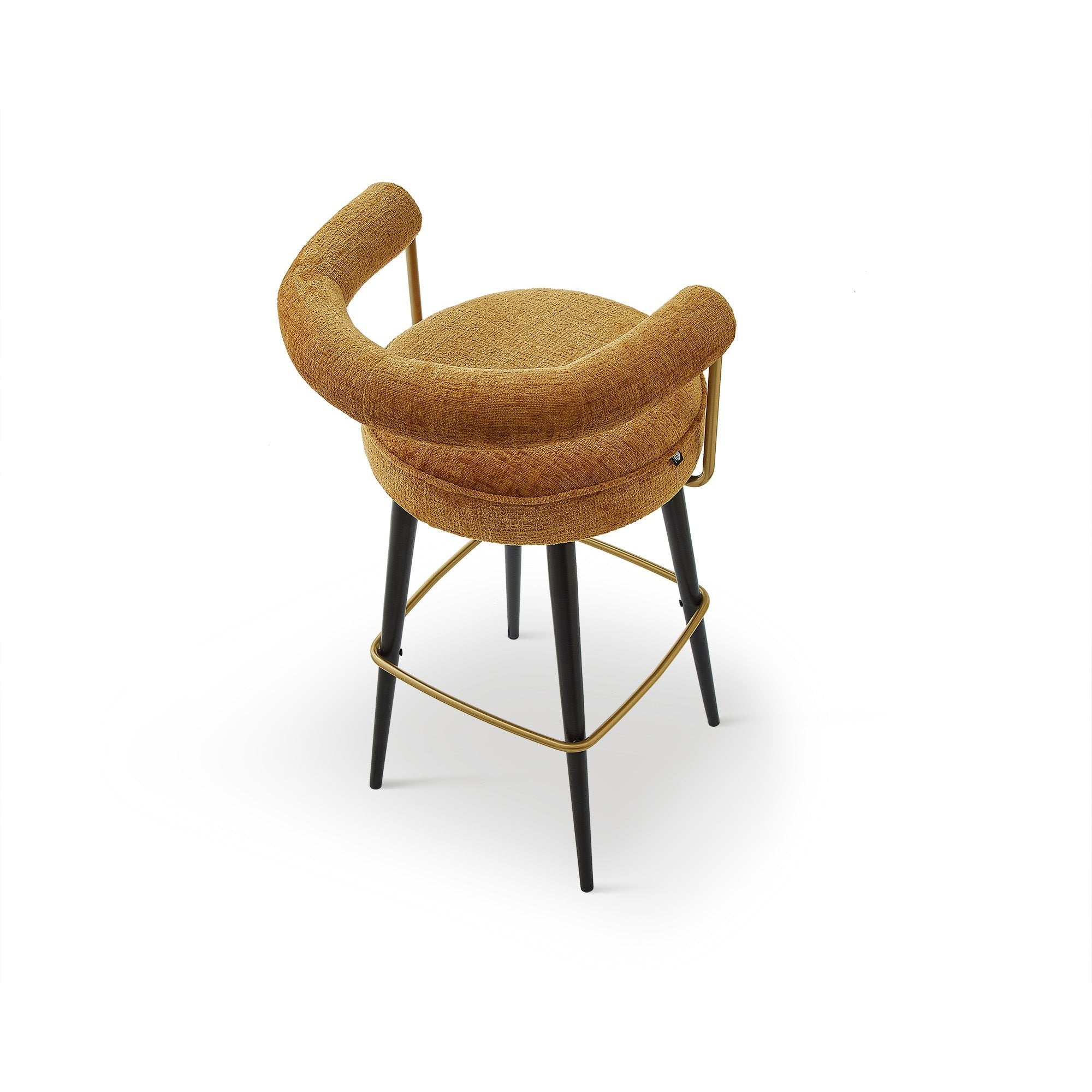 Elevate your space with the chic Josephine Bar Stool in Bennett Mustard. This stunning bar stool features a warm orange ochre hue paired with an intriguing leg and backrest design, making it a striking focal point in any setting. Versatile and sophisticated, this stool is perfect for kitchens, bars, lounges, and living areas, enhancing the ambience with its unique charm. Expertly crafted with high-quality materials, it merges comfort with contemporary style, perfect for both hospitality and residential settings.