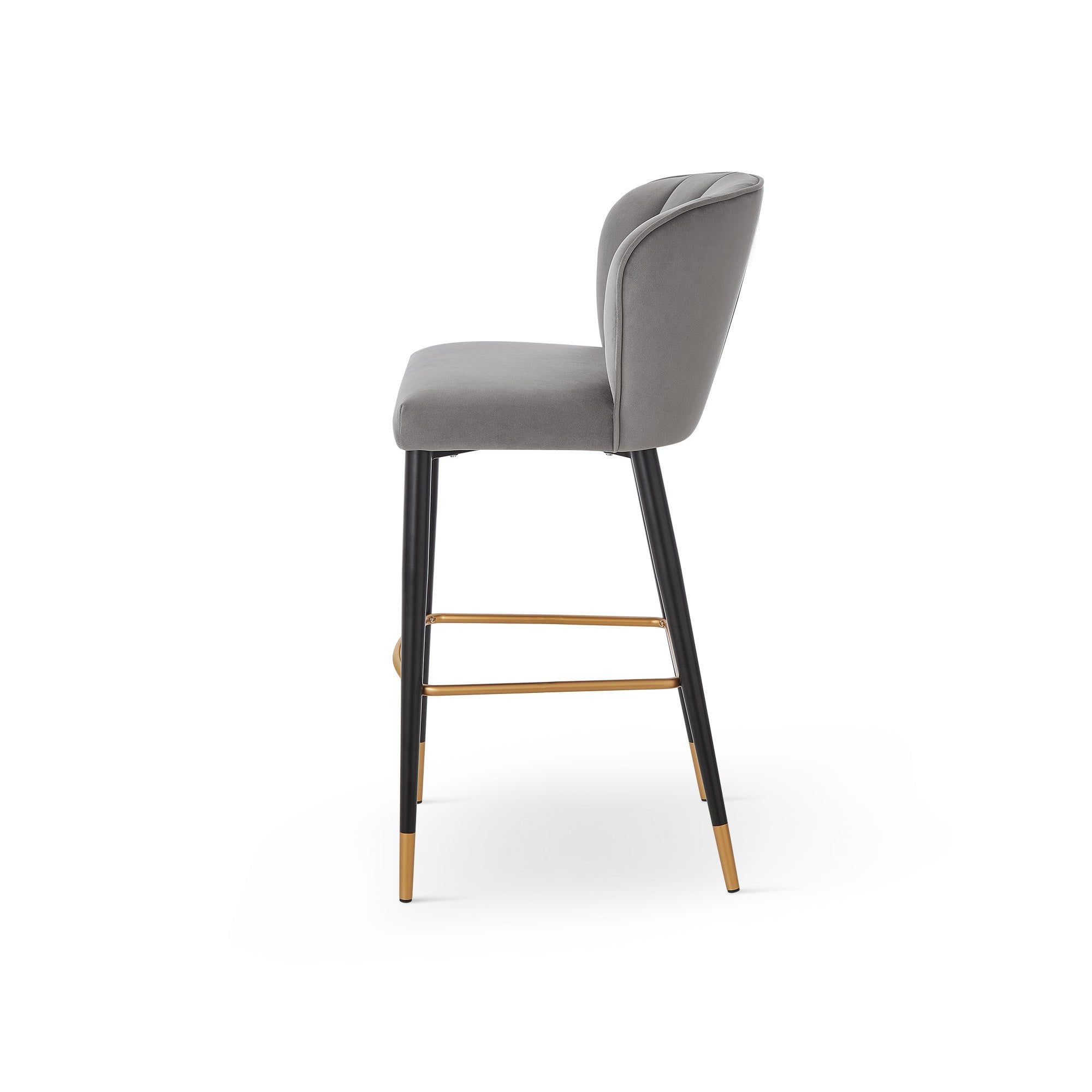 Discover the Maya Bar Stool, a sophisticated blend of style and safety tailored for both residential and hospitality environments. Upholstered in Megan Grey and Brushed Brass fabric that complies with BS7176 fire safety regulations, it features a chic backrest and brushed brass accents for an added touch of elegance. This piece provides essential comfort and modern appeal, seamlessly integrating with diverse decor schemes. Enjoy peace of mind and aesthetic beauty in one stunning bar stool.