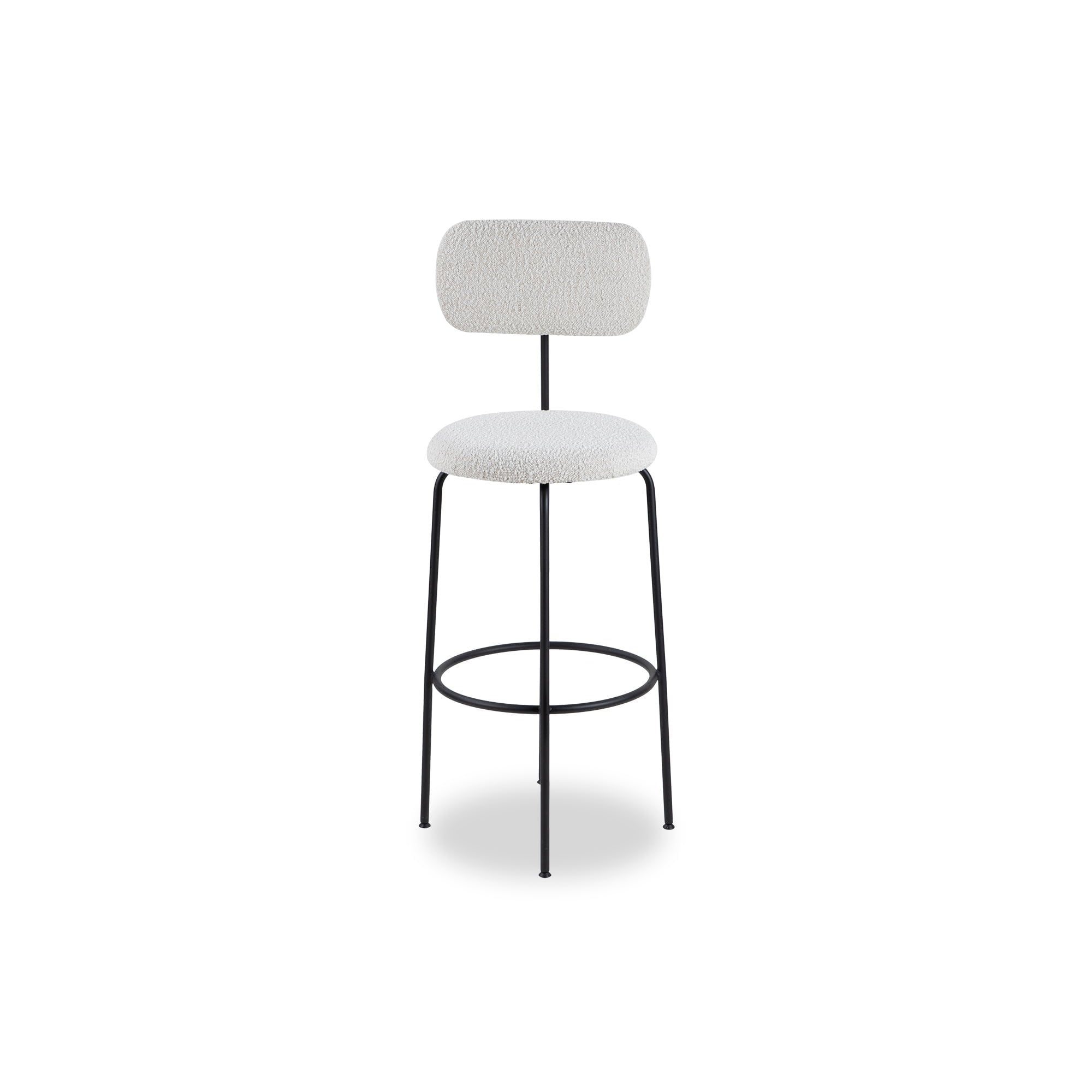 Enhance your seating area with the elegant Seclus Bar Stool, featuring a boucle sand fabric seat supported by sleek matt black steel legs. This stool merges style with comfort, making it a perfect fit for high-end homes or exclusive hotel bars where sophistication is key.