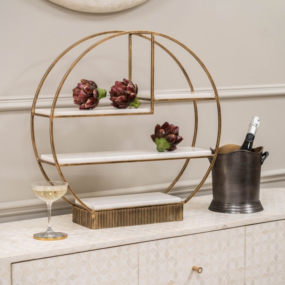 The Belvedere Aged Gold Single-Tier Buffet Stand makes a striking statement piece in both traditional and modern interiors. Designed with a single tier to hold a variety of items, from food to décor, the design provides ample space for a stylish and functional display. The rich aged gold metal frame and White Banswara marble are a sophisticated combination. A single-tier, two tier and multi-tier circular buffet stand are all available as part of the Belvedere collection.