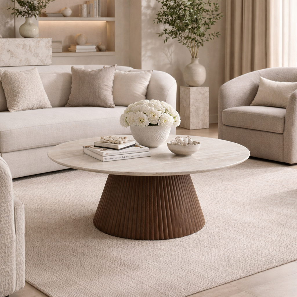 The Milan Coffee Table brings refined luxury to any living room or contemporary interior. Featuring an elegant marble top paired with a rich walnut base, this statement coffee table blends natural materials with timeless design.