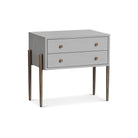Redefine elegance with the Nella Bedside Table, crafted for both hospitality and residential use. Featuring London Fog and Hammered Dark Bronze legs, its sophisticated design offers practical storage with two spacious drawers. Elevate your bedroom aesthetic with this exquisite piece that balances durability and style, making a significant impact on your decor.
