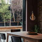 Decorative LED filament lamp made of mouth-blown glass.