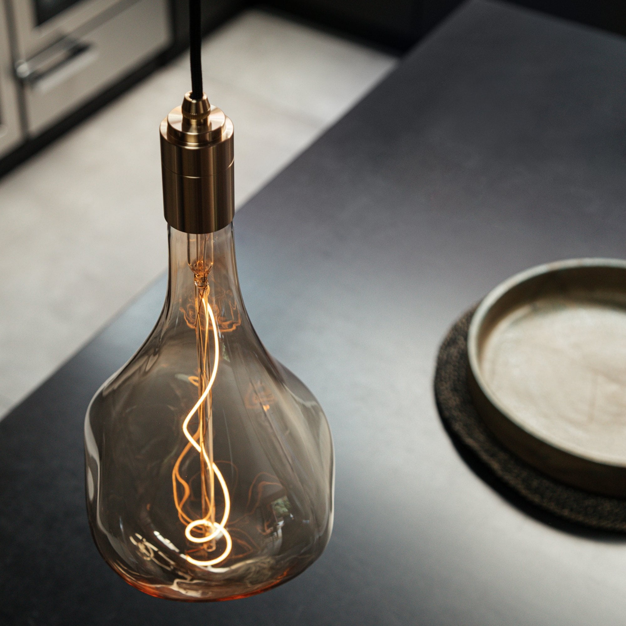 Decorative LED filament lamp made of mouth-blown glass.