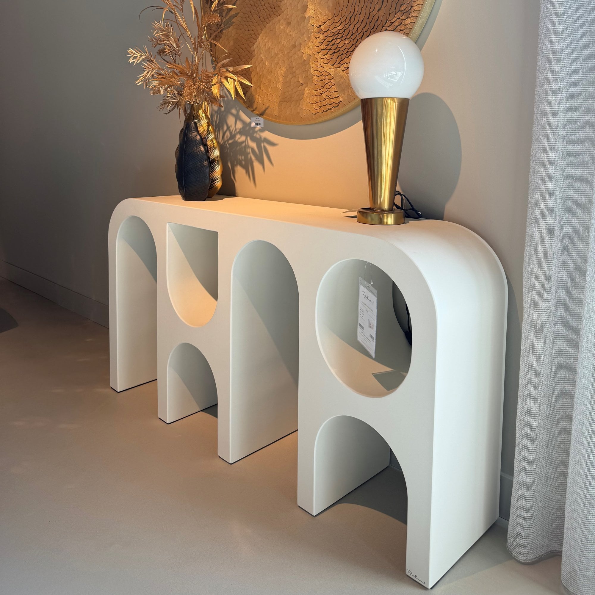 The Bloomstone console has a unique and organic shape that immediately catches the eye. This table is made of high-quality plaster, ensuring a durable and sturdy design.
