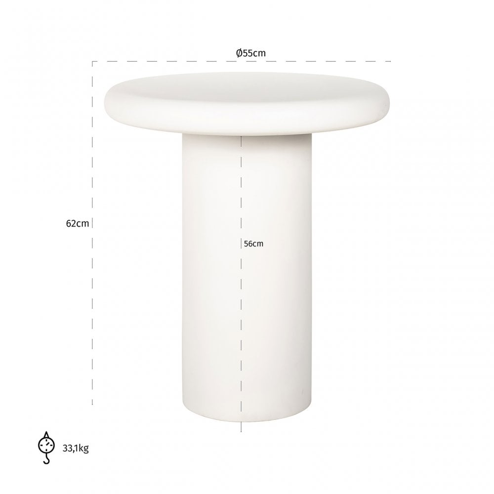 The Bloomstone side table has a unique and organic shape that immediately catches the eye. This table is made of high-quality plaster, ensuring a durable and sturdy design.