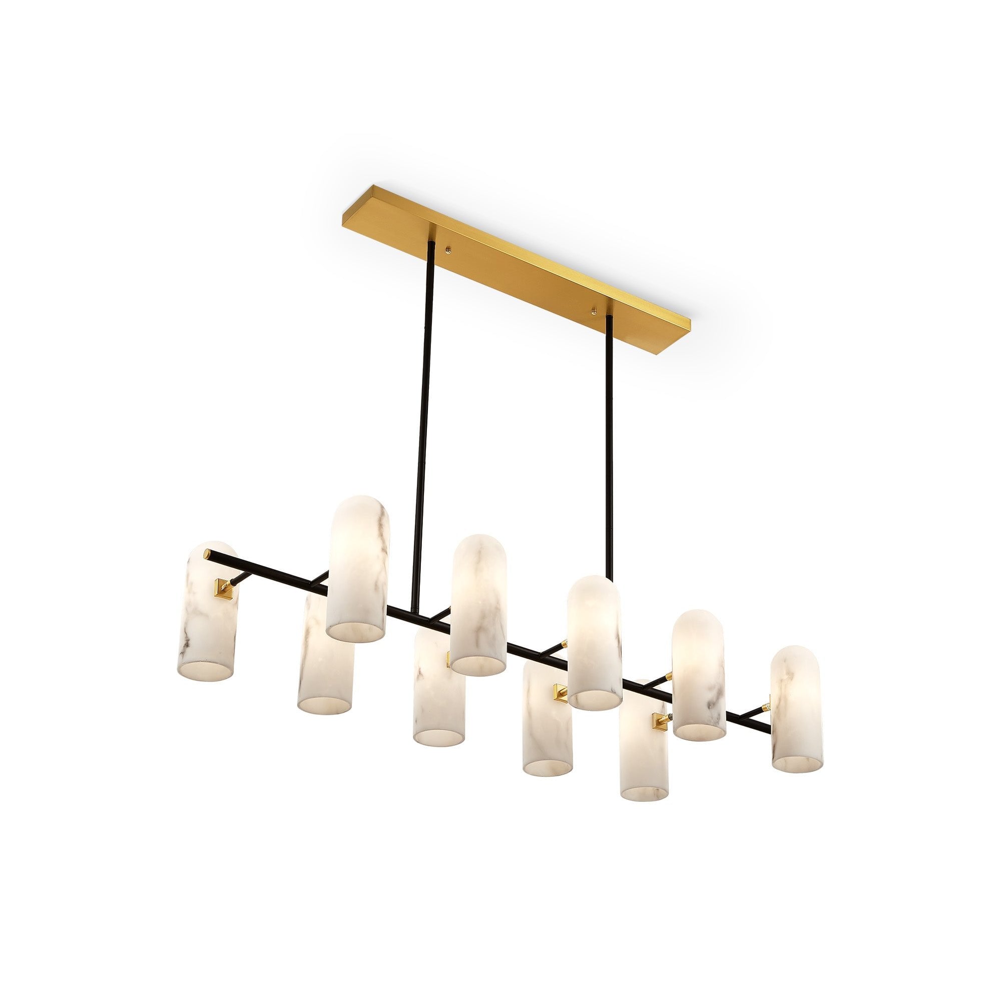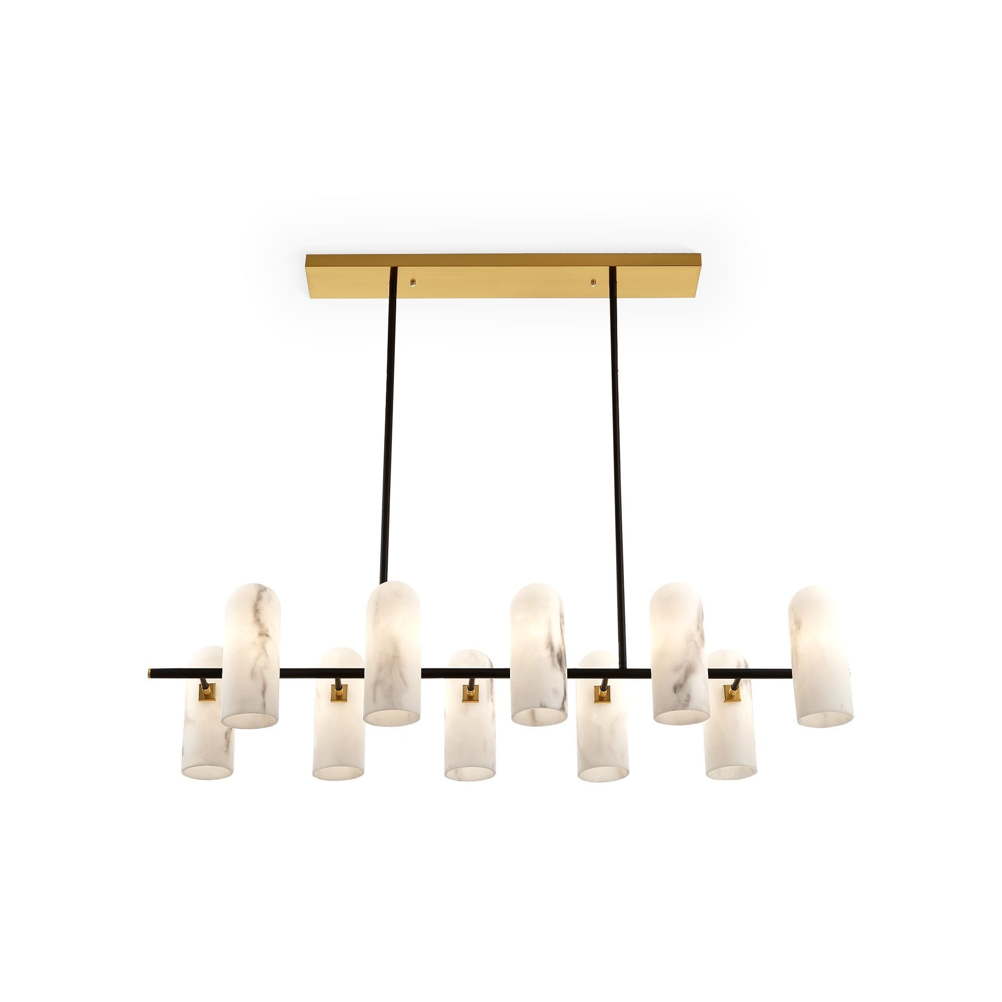 Amatti Pendant Light Long Alabaster Shades Black & Brass Frame 10 Lights