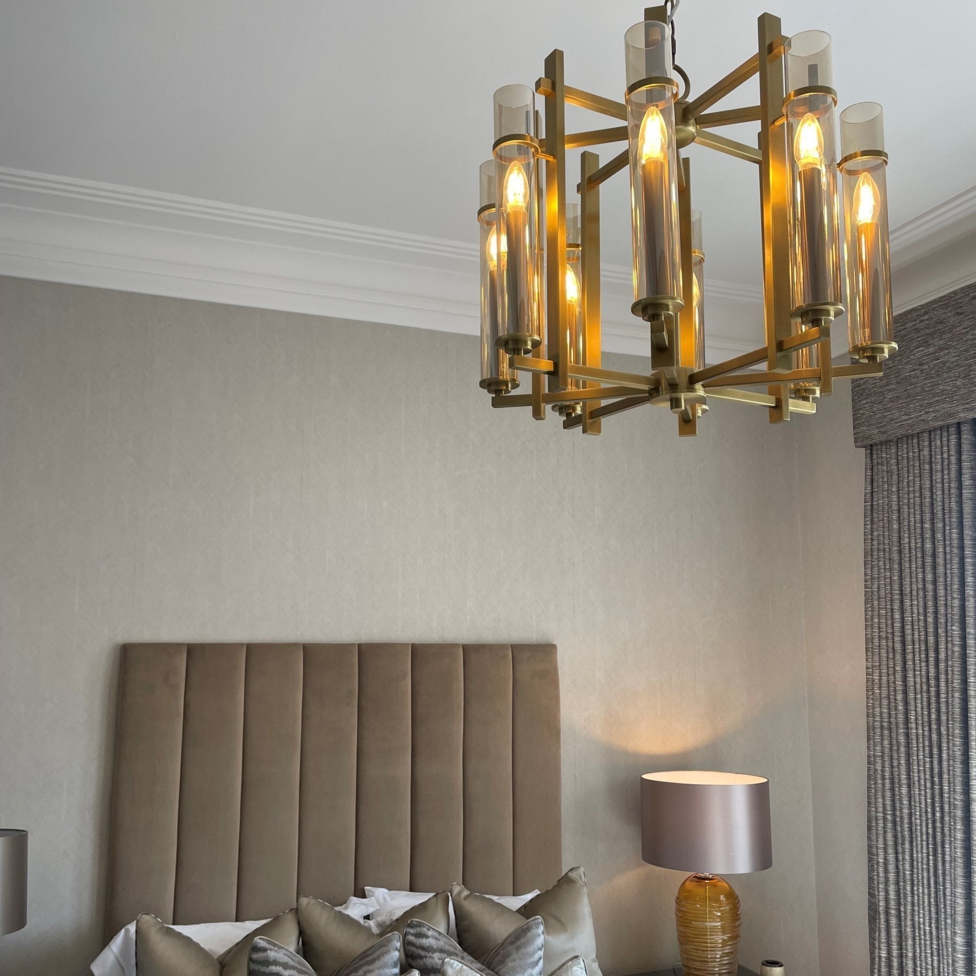 This Antique Brass Pendant features a striking design with eight glass tubes, each elegantly holding a bulb within. Its solid, bold presence makes it an ideal lighting solution for modern classic interiors or a dramatic addition to contemporary spaces. The pendant is height-adjustable at the point of installation and fully dimmable, offering both style and versatility. Also available in a Pale Gold finish, this stunning piece brings a touch of luxury and impact to any room, making it a focal point in your home décor.