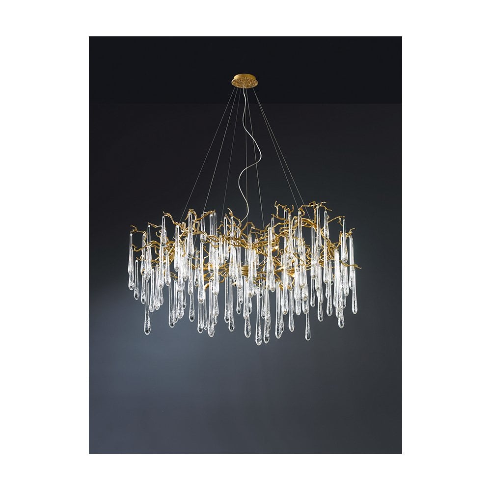 Inspired by Winter water drops. The Aqua Collection is an iconic set of the Serip family, both by its element of inspiration and by its inherent association with our identity, expressing a strong connection to our main inspiration source, nature. The bronze structure expands in entangled branches that lead to floating glass pieces, a characteristic that concedes an airy touch together with its delicate and elegant look, concepts visible in the smallest detail of the glass drops. Through several chromatic choices and design options, the Aqua Collection presents itself as an exquisite nature-inspired piece, perfect for any concept.