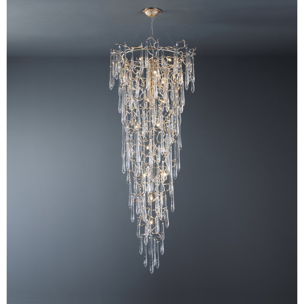 Inspired by Winter water drops. The Aqua Collection is an iconic set of the Serip family, both by its element of inspiration and by its inherent association with our identity, expressing a strong connection to our main inspiration source, nature. The bronze structure expands in entangled branches that lead to floating glass pieces, a characteristic that concedes an airy touch together with its delicate and elegant look, concepts visible in the smallest detail of the glass drops. Through several chromatic choices and design options, the Aqua Collection presents itself as an exquisite nature-inspired piece, perfect for any concept.