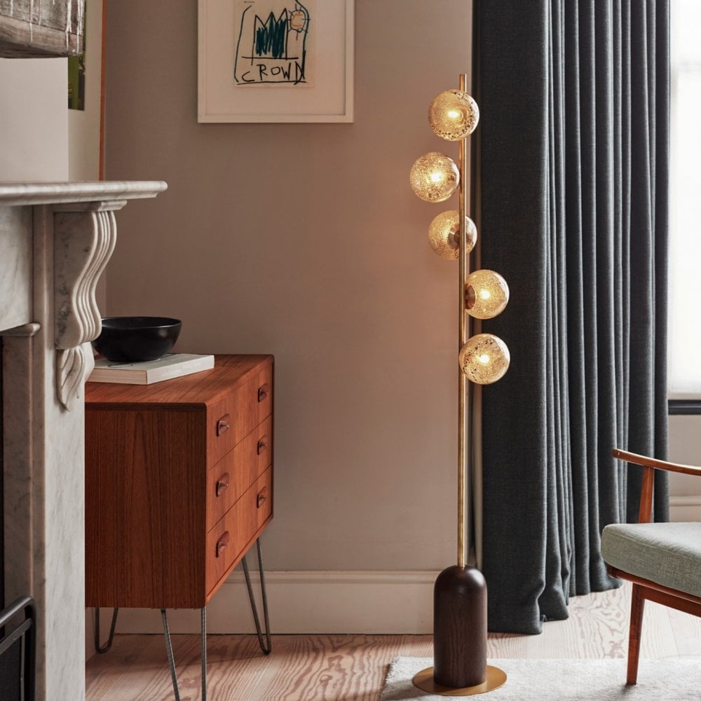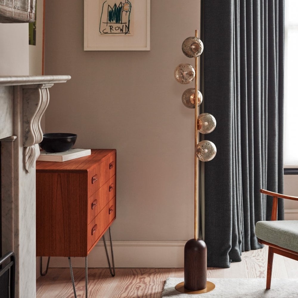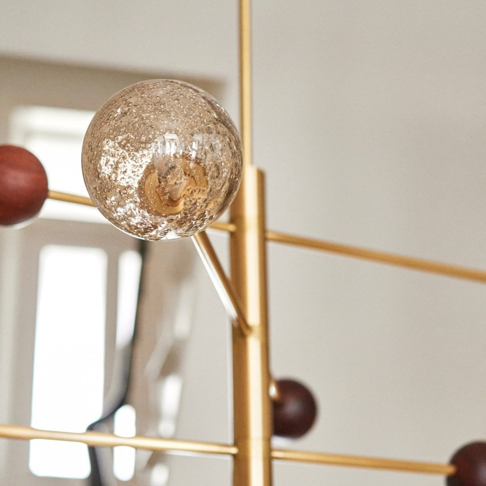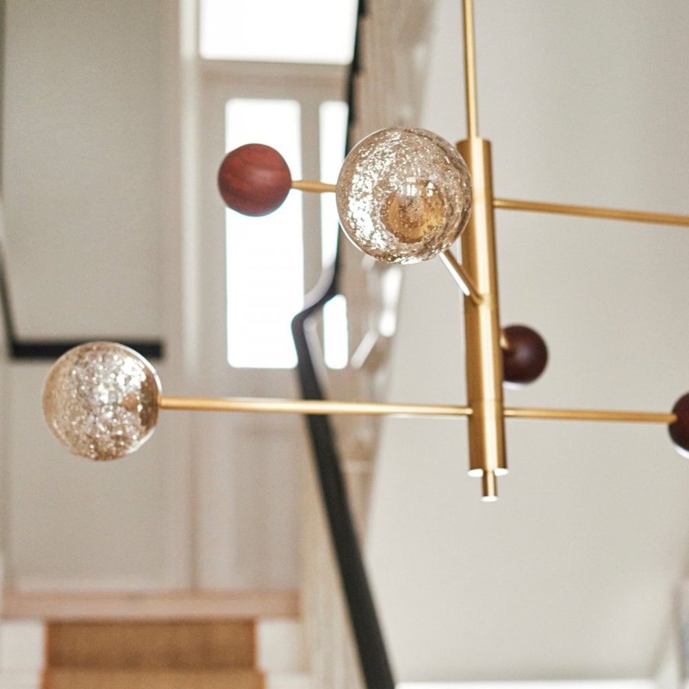 Carter strikes the perfect balance between traditional and contemporary design. Our signature antique frit finish is reimagined into a modern glass form, whilst the smoked oak wood warms up the brass, giving the pendant a mobile look that will draw attention from every corner of the room.