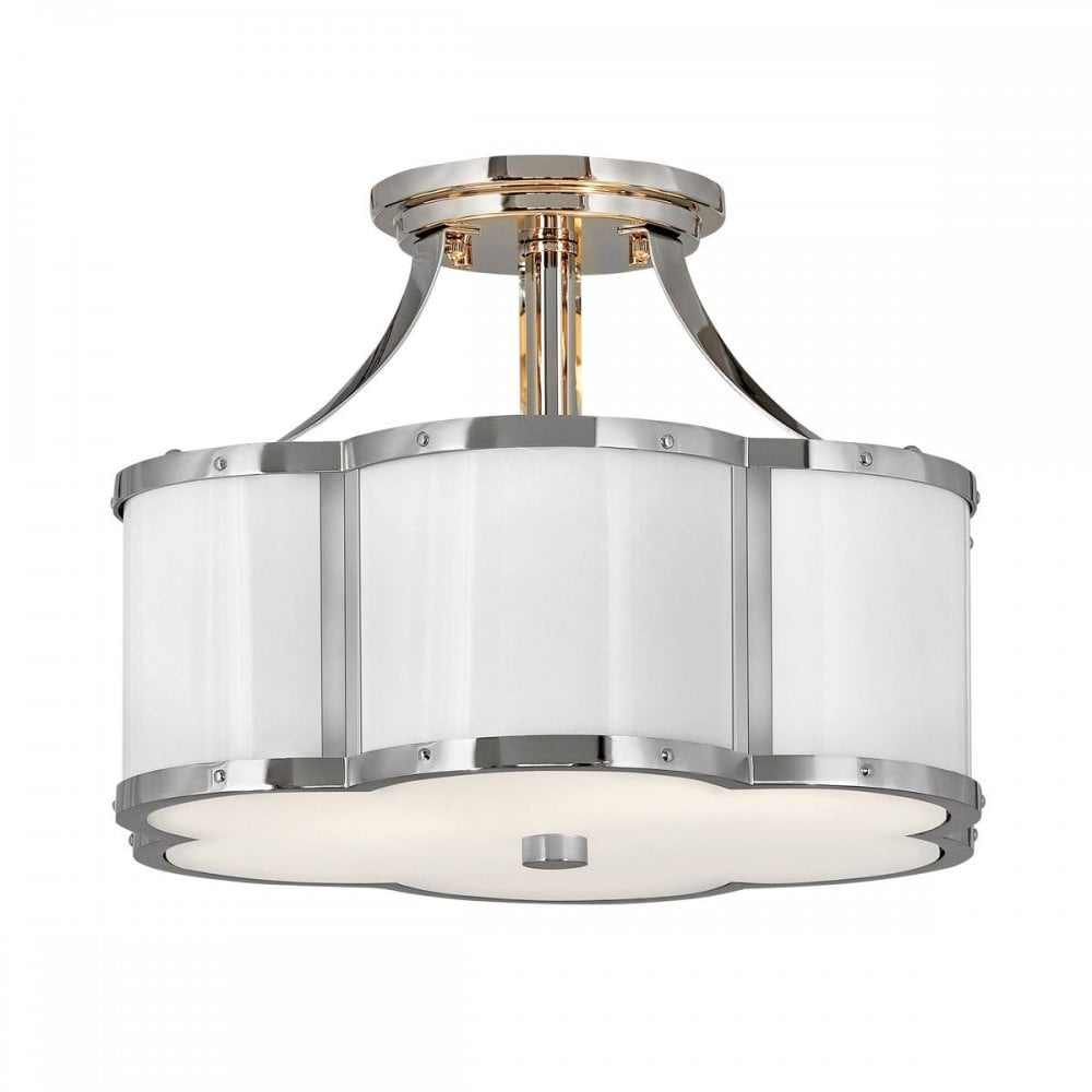 Chance Polished Nickel & White 2 Light Semi Flush Ceiling Light