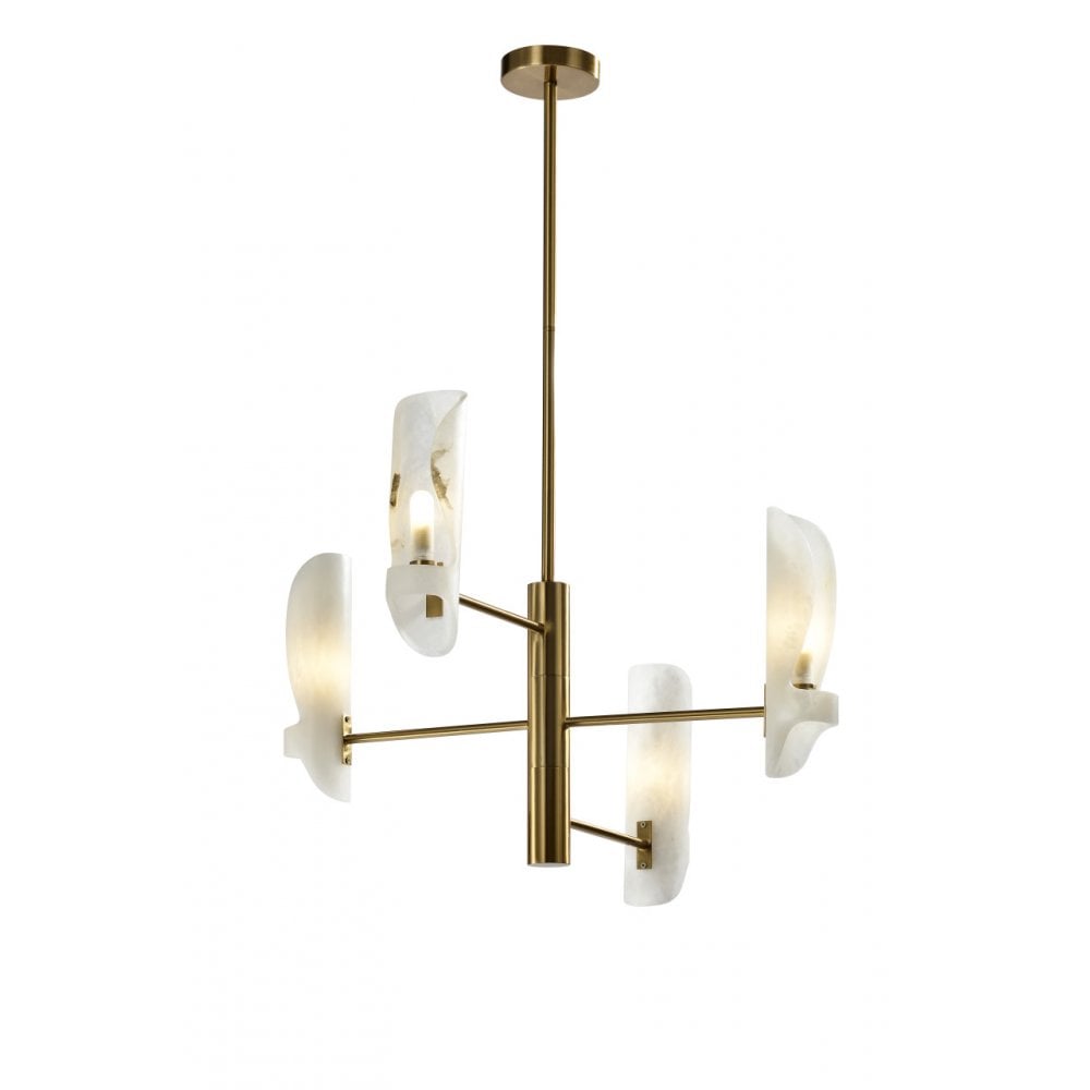 Looking for a statement light fixture? Well look no further! Gold in colour with frosted glass shades in a marble effect, this large ceiling light is sure to make a statement.