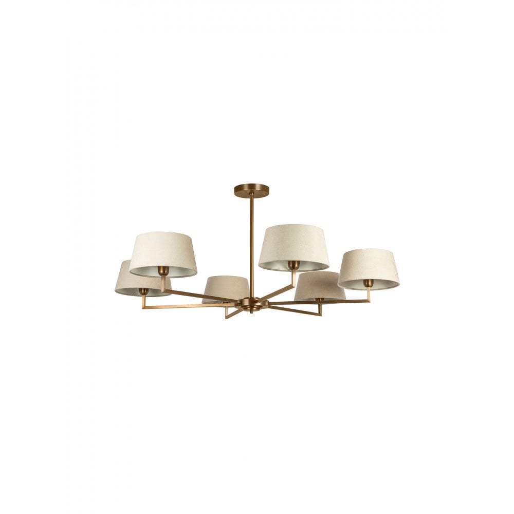 Our Holt ceiling pendant features clean, crisp lines with an understated stepped detail at the centre. The versatile design is completed with 6 petite tapered lampshades available in a selection of complimenting fabrics, or select your own.