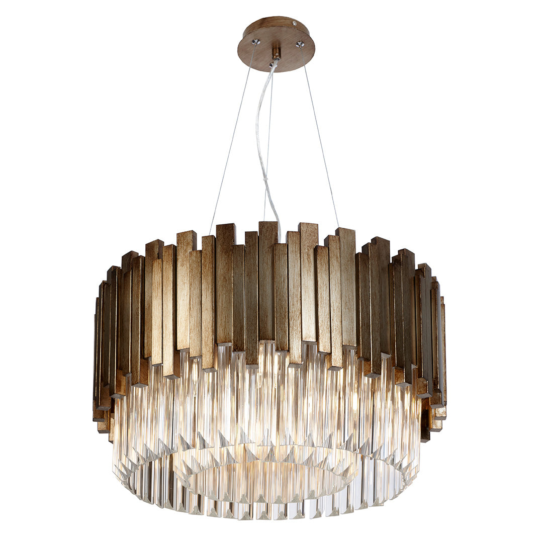 If you are looking to make a dramatic statement, the Mars Pendant is the perfect addition to your home. Its stunning two-tier design is expertly crafted from antique-painted gold bars and glass, creating a striking visual impact. Whether styled over a dining table, kitchen island, or in a living room, this pendant light will captivate attention and elevate your space. The Mars Pendant not only provides ample illumination but also seElegancees as a bold centerpiece that enhances the overall aesthetic of your interior, making it a must-have for those looking to create a memorable atmosphere. Available in a larger 80cm diameter size.