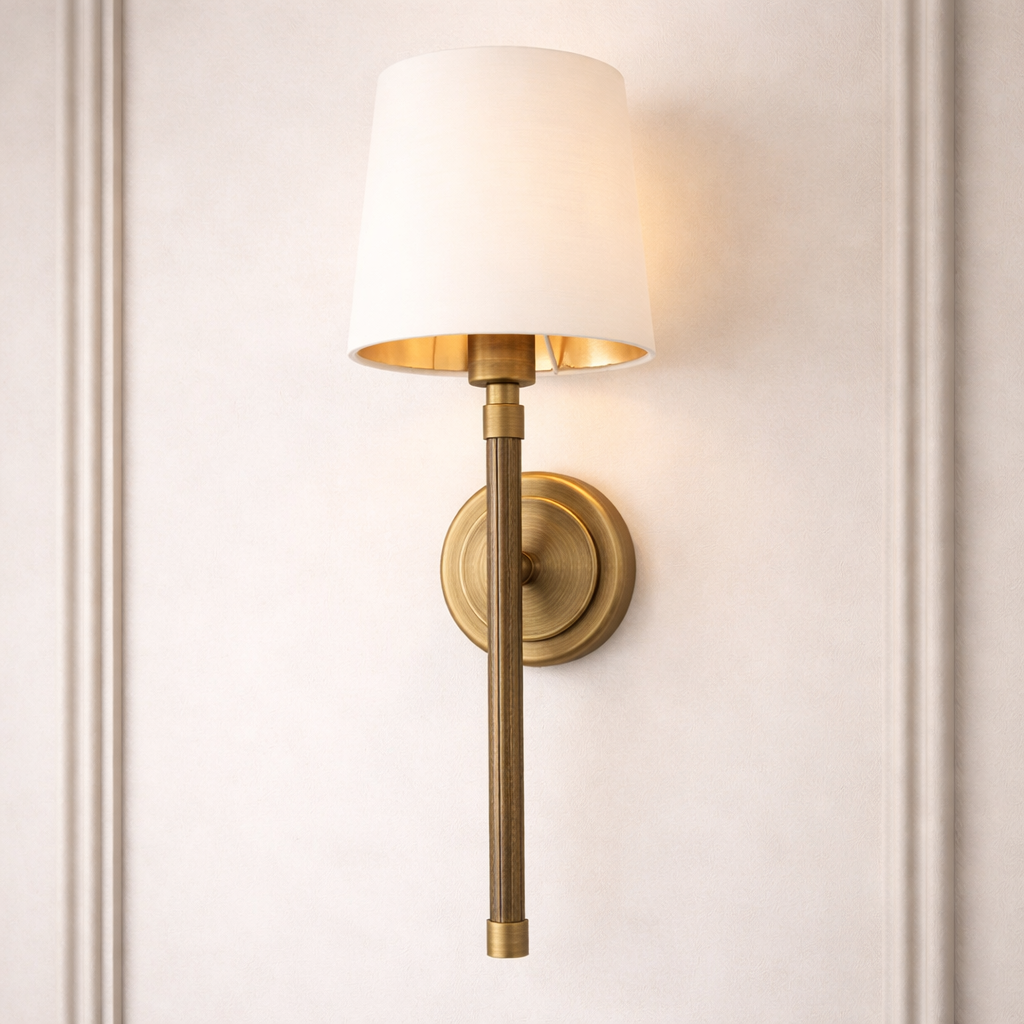 Each arm is carefully designed to strike the perfect balance between vintage-inspired detailing and sleek, modern lines. The round opal shades, with their luxurious gold-lined interiors, add a rich, opulent touch that elevates the design further.