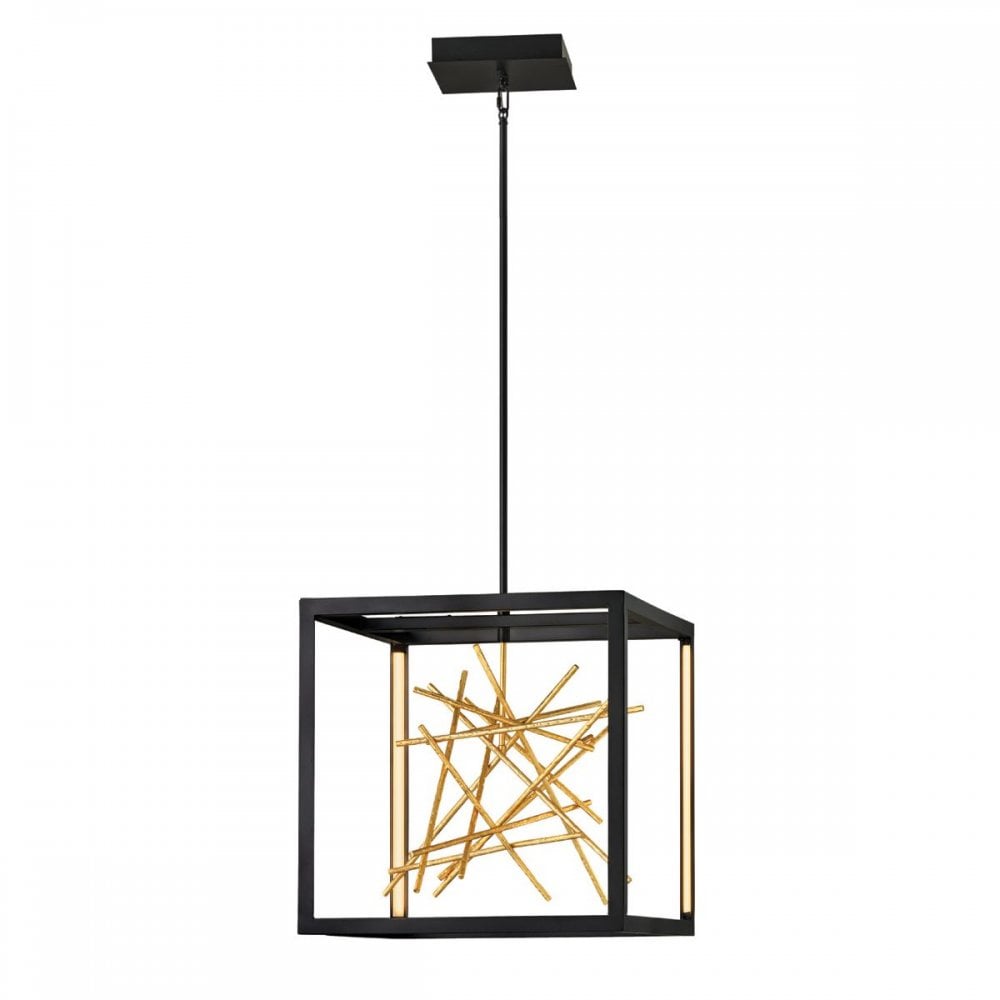 The breathtaking design of Styx fuses rich glamour with modern styling for an enthralling and dynamic silhouette with unexpected elements. An integrated LED open frame is fully dimmable, composed of clean angles in a chic Black finish. The frame illuminates textured metal branches in Gilded Gold, mingling organic and contemporary elements.