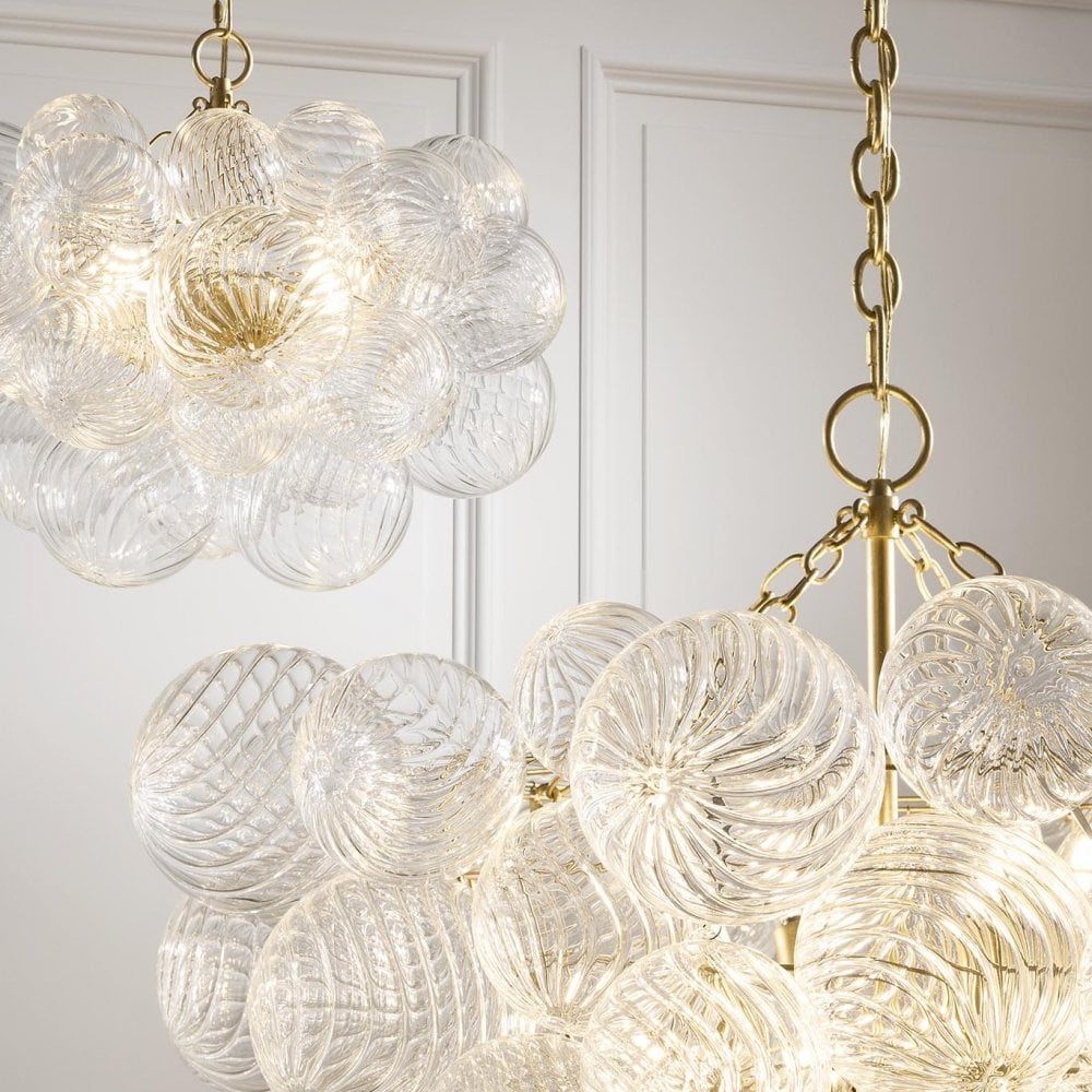 Elevate your space with the Talia Chandelier, a stunning blend of elegance and artistry. This exquisite fixture features gilded accents paired with clear swirled glass shades, creating a radiant interplay of light and texture. Its graceful silhouette and refined detailing make it a statement piece perfect for dining rooms, living areas, or entryways. The Talia Chandelier doesn’t just illuminate a room, it transforms it, casting a warm, inviting glow while adding a touch of sophisticated glamour to any interior.