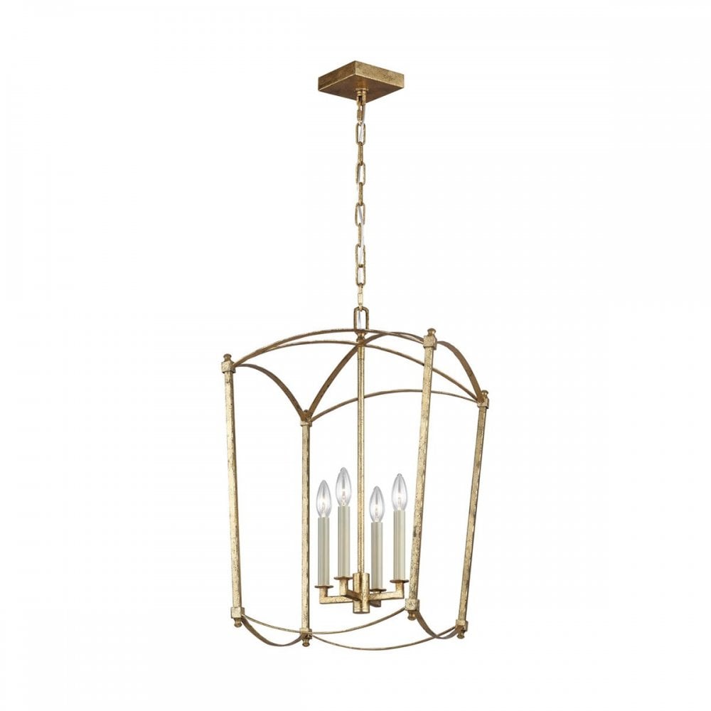 Sophisticated and sleek, the Thayer collection is a refreshing interpretation of a traditional four-sided lantern softened with graceful curved lines. Thayer is available in an Antique Gild finish, with ivory candle tubes.