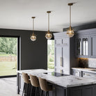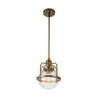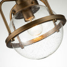 The Triocent 1-light convertible pendant/semi flush in Natural Brass features a Clear Seeded glass globe coupled with industrial-look fasteners and hardware. The look works in both modern and traditional spaces. Given it has an IP44 rating, Triocent is also ideal for Bathroom use.