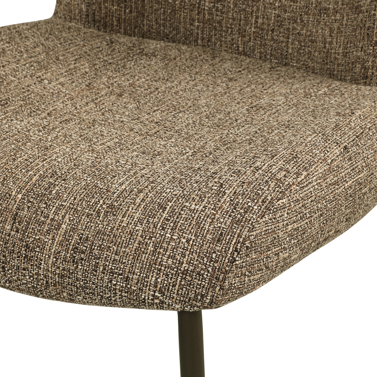 A dining chair with a compact and refined appearance. The brown tweed upholstery gives the design a warm and timeless look, while the fire retardant finish makes it suitable for both residential and project environments. Its comfortable seat and slender shape create a balanced addition to any dining area. Supplied as a set of two.