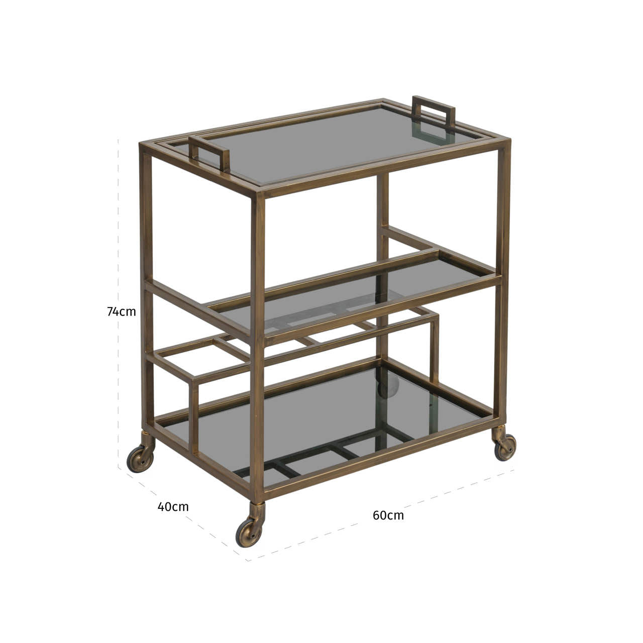 A serving trolley that brings style and convenience together. Ideal for arranging glasses, bottles or accessories neatly. Thanks to its elegant design it looks refined even when not in use. Its design blends easily with different interior styles and helps create a balanced atmosphere in the room. The design remains easy to combine with a wide range of interior styles.