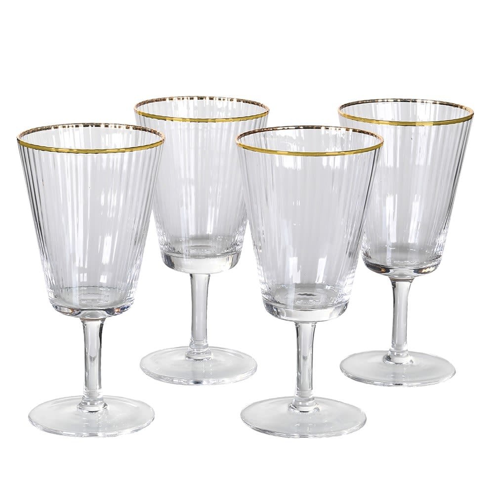 Set of 4 Gold Rim Ribbed White Wine Glasses