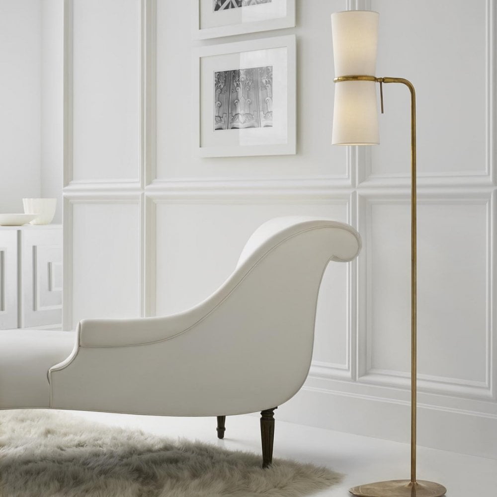 Clarkson Floor Lamp in Hand-Rubbed Antique Brass with Linen Shades