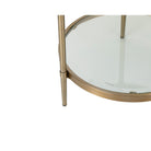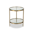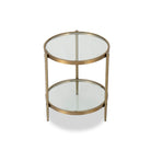 The Liang & Eimil Adlon Side Table exudes elegance with its brushed brass-finished stainless steel frame and clear glass top. Its sturdy circular design, round edges, and smooth metal frame make it an exquisite piece for displaying prized possessions. Artisan crafted with flawless finishing touches.