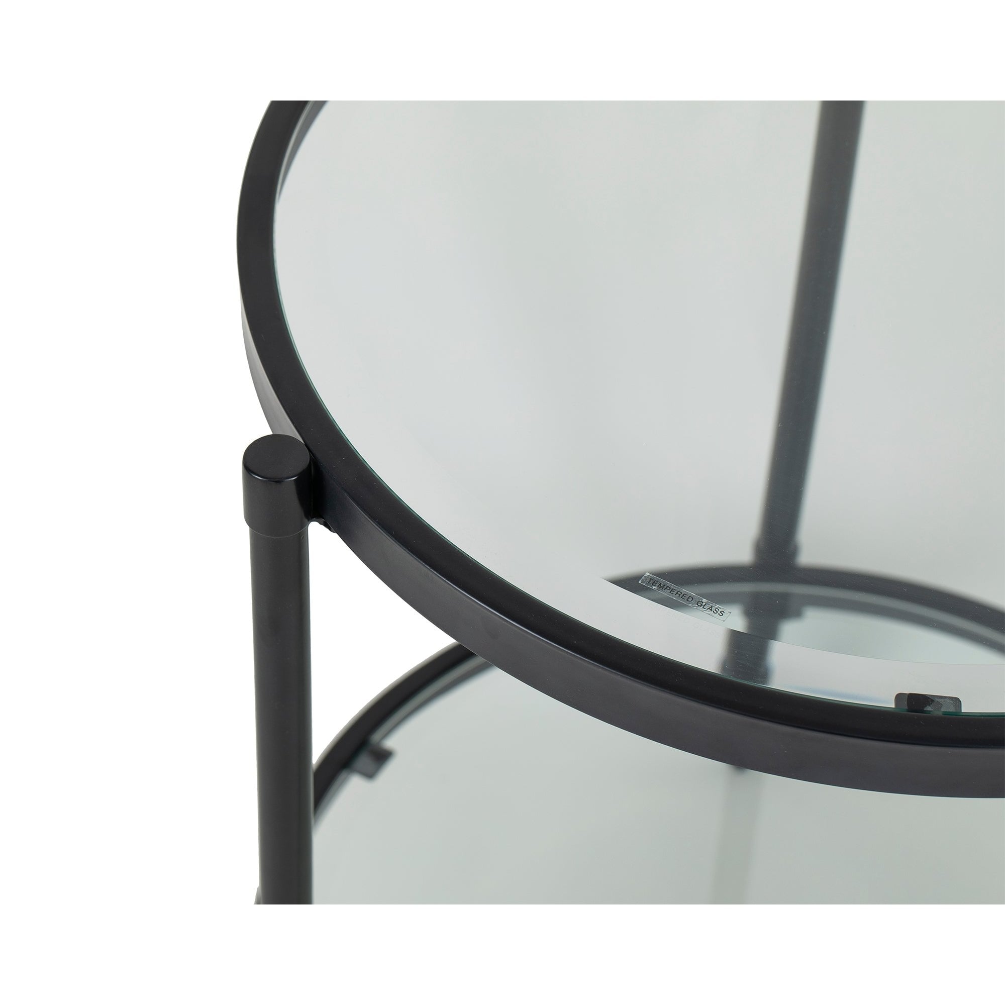 The Liang & Eimil Adlon Side Table combines industrial charm with luxury. With its industrial brown-finished steel frame and clear glass top, the sturdy circular design, round edges, and smooth metal finish make it a perfect piece for displaying prized possessions. Artisan crafted with flawless finishing touches.