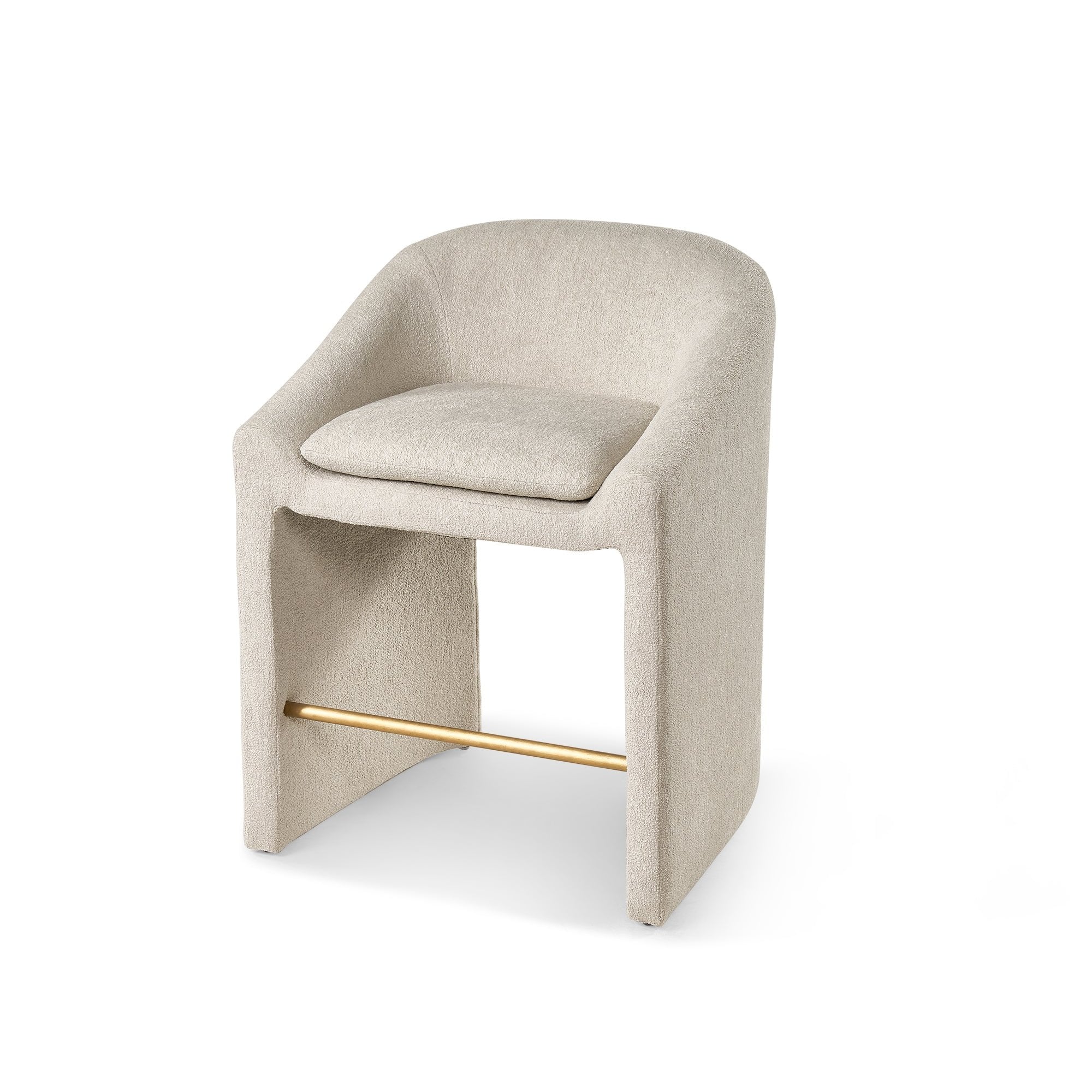 Experience comfort and elegance with the Liang & Eimil Albin Counter Stool. Upholstered in timeless Lander Shade Chenille, this stool features a brushed brass footrest and a sturdy wooden frame. Perfect for your kitchen or dining area, it combines style, functionality, and luxury for a sophisticated look.