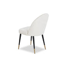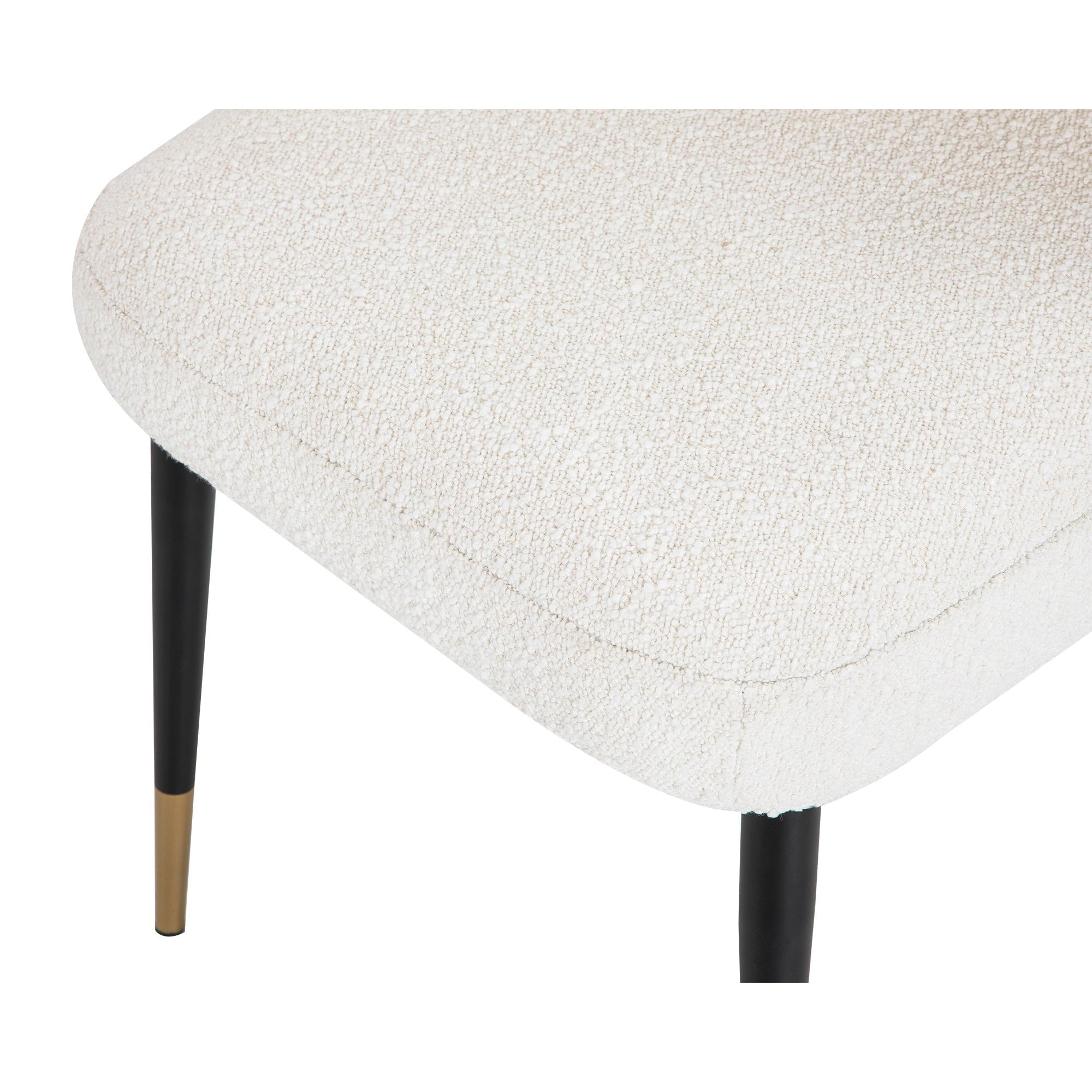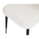 The Alfa Chair features a striking design with exceptional versatility. Upholstered in Boucle Sand fabric, it is complemented by black steel legs with gilt finish caps. This elegant chair brings a touch of sophisticated simplicity to any dining room. Available in pairs only.