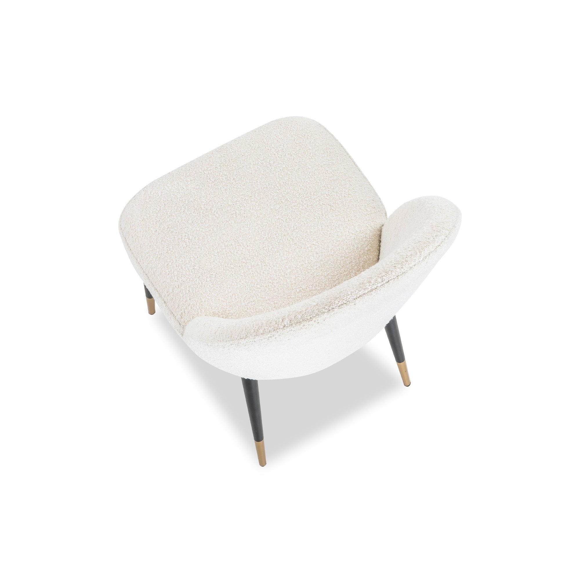 - Material: Boucle Sand Fabric & Black Steel