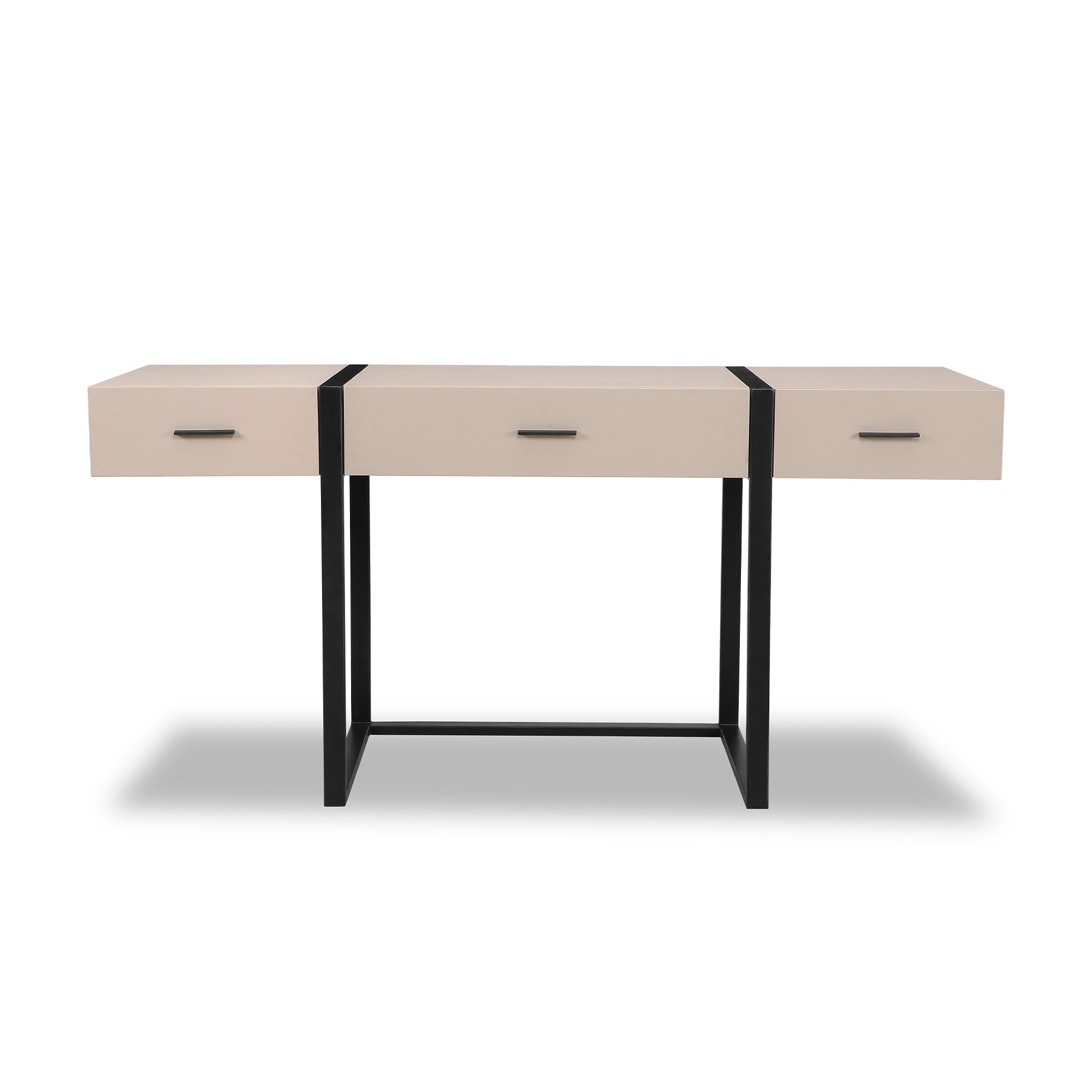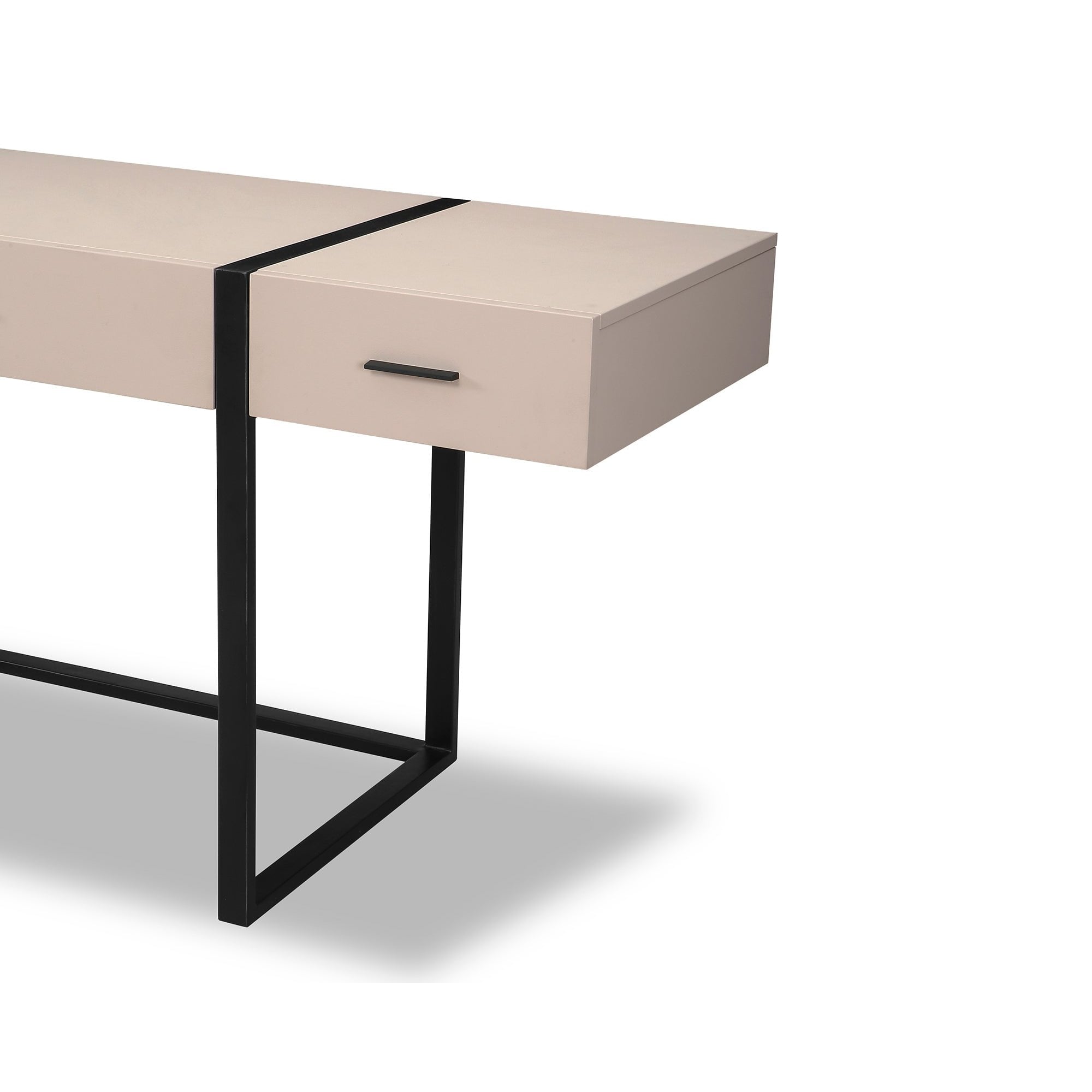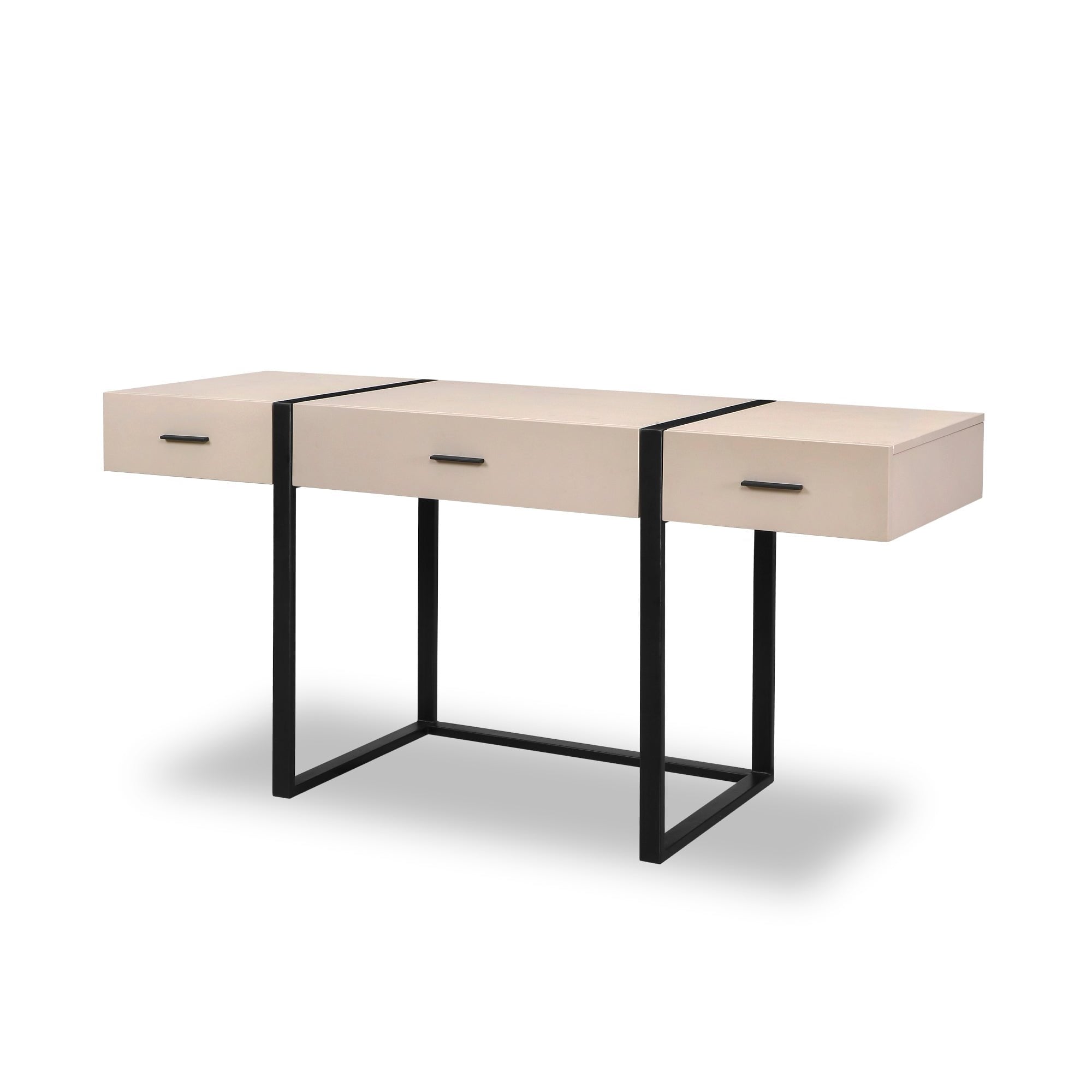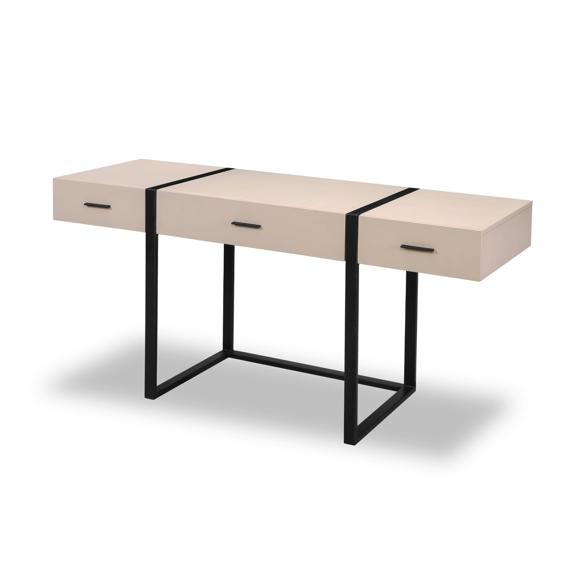 Almati Dressing Table Matt Black Metal Frame & Mink Faux Leather Drawers