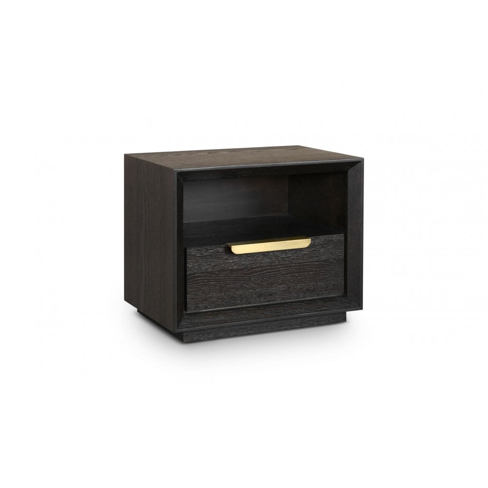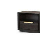 Aspen Bedside Table Textured Coffee Oak Wood with Gold Handles 1 Drawer