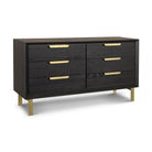 Aspen Chest of Drawers Textured Coffee Oak Wood with Gold Handles & Legs 6 Drawer