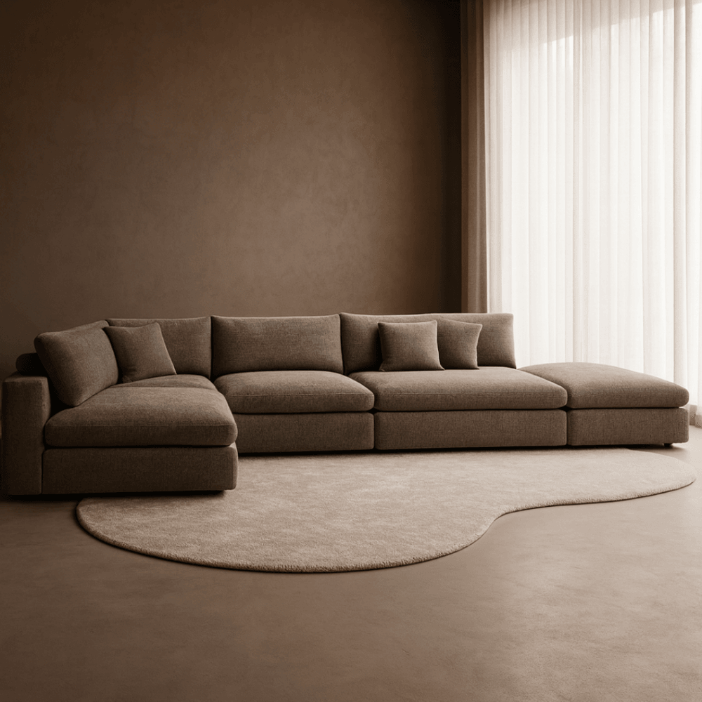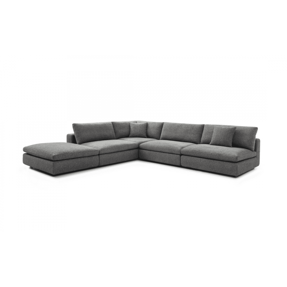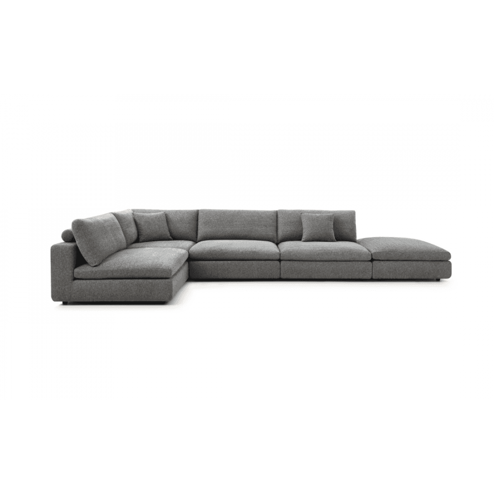 The Blanco 5 Piece Modular Sofa presents a generous-sized and adaptable seating solution, perfect for accommodating various living spaces. Its modular design allows for versatile arrangement, ensuring it seamlessly fits into any room layout. Upholstered in a beautiful charcoal fabric, the sofa exudes a cosy charm while adding a touch of elegance to the decor. Beyond its aesthetic appeal, the Blanco Modular Sofa prioritises comfort, providing a welcoming and inviting seating option for lounging or entertaining guests. Whether configured as a spacious sectional or arranged as individual pieces, this sofa promises to be the focal point of relaxation and social gatherings in any home.