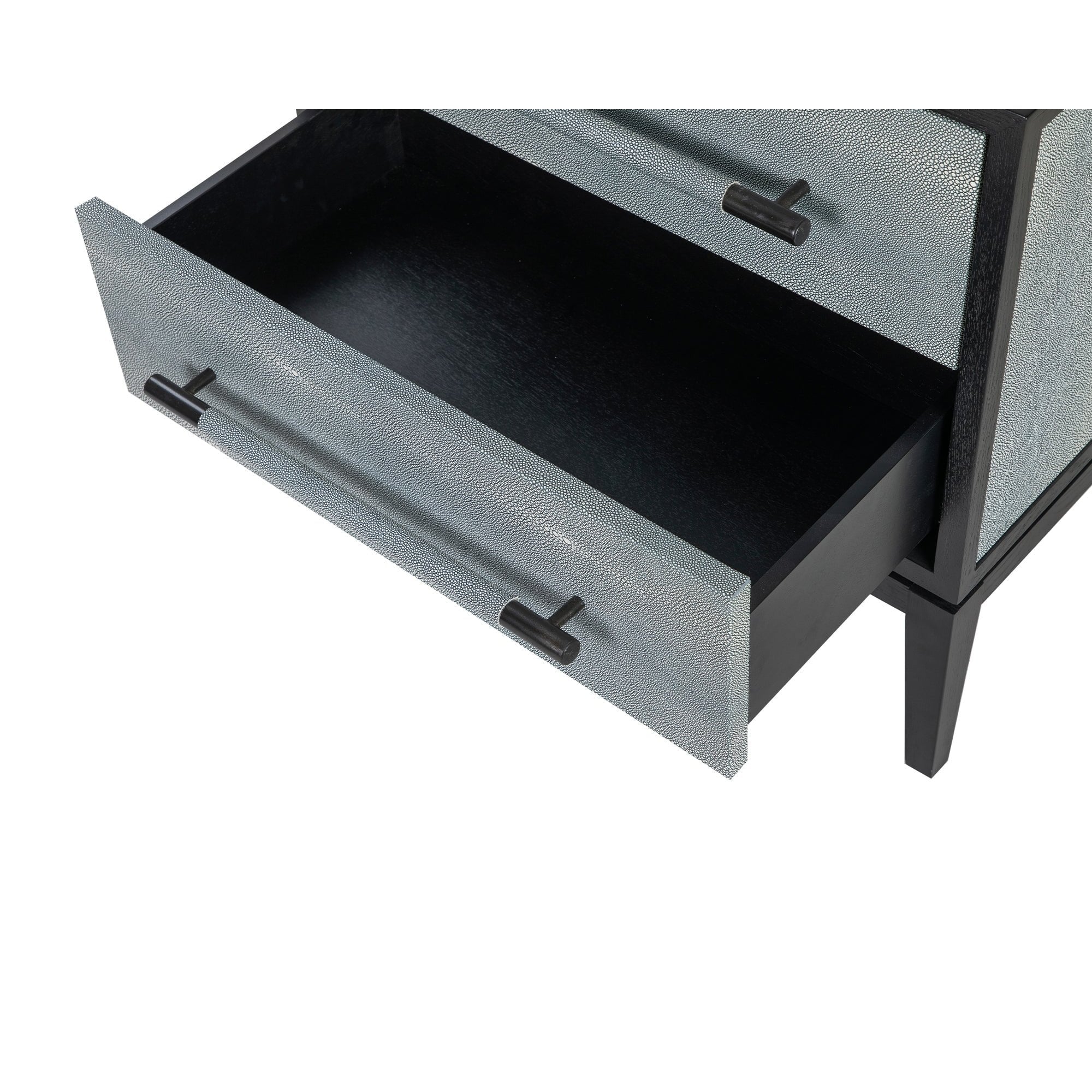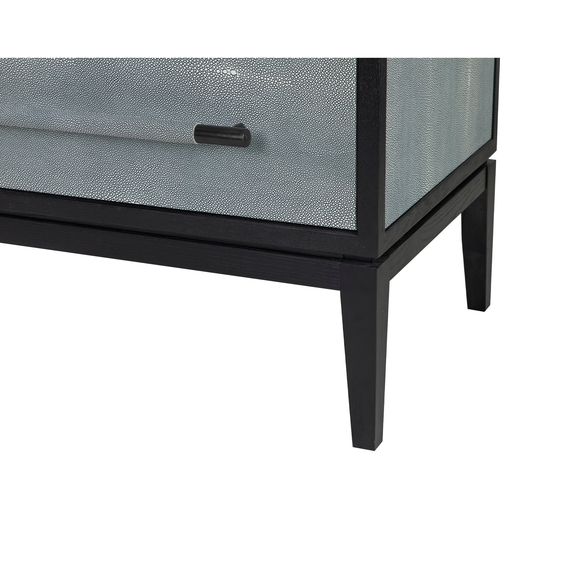 Bologna Black Ash Wood & Grey Leather Look Shagreen Bedside Table