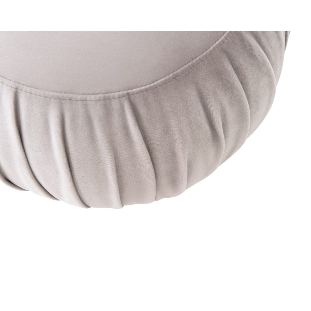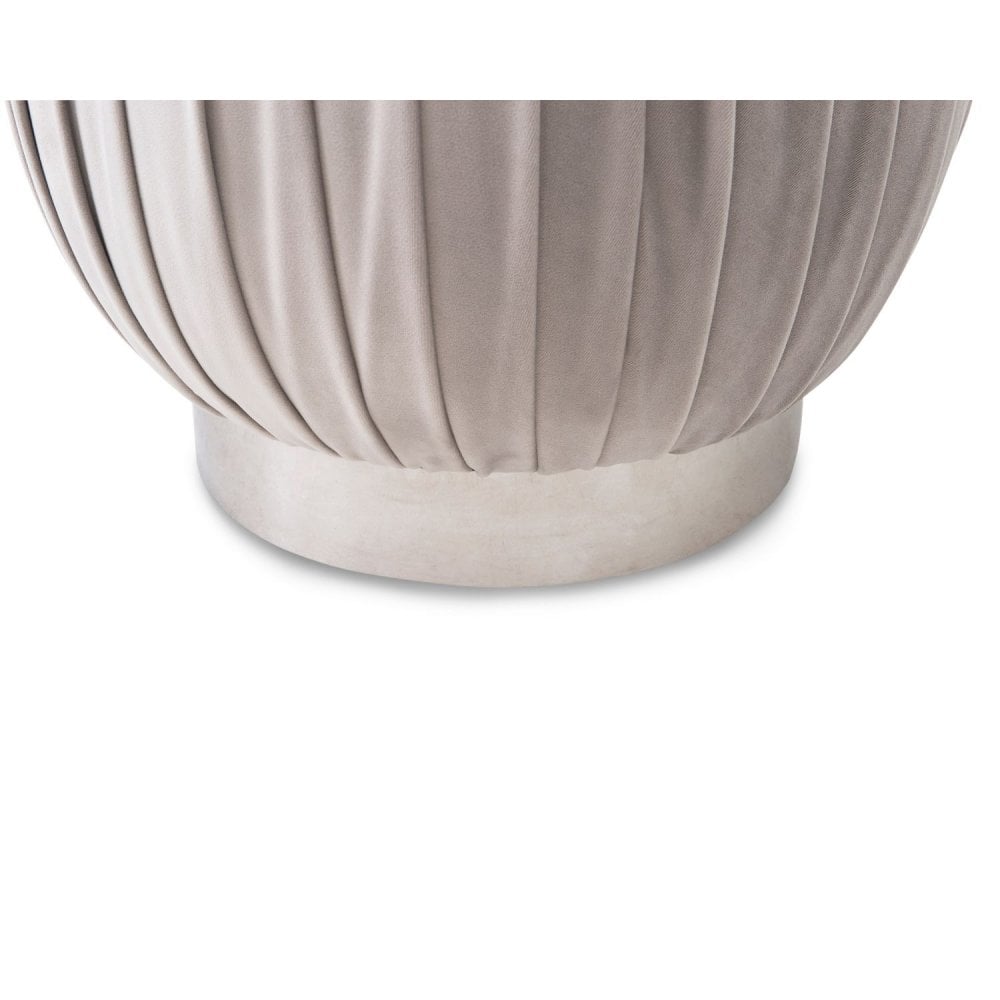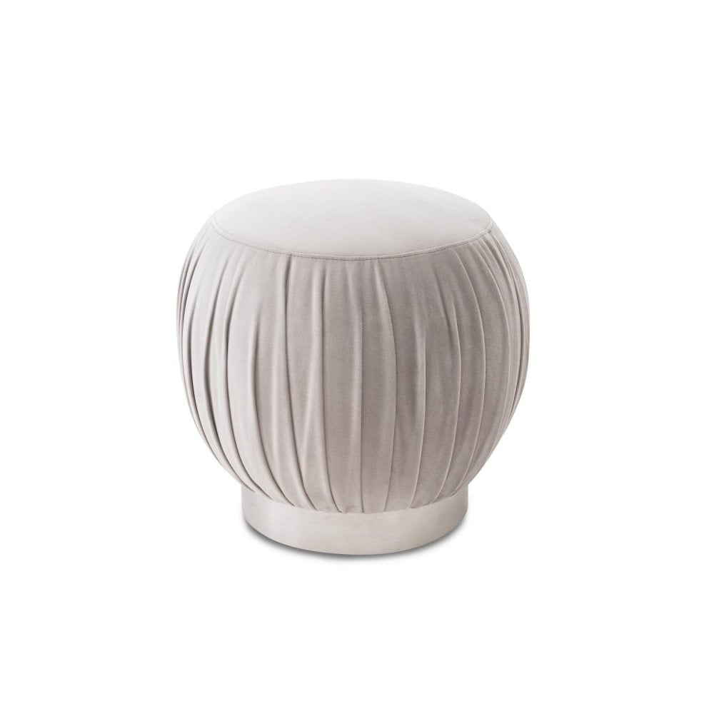 Experience elegance and versatility with the Toscana Misty Fabric Accent Stool. Featuring gloriously gathered and pleated fabric, this stool makes a fabulous statement piece in any living space. Its polished stainless steel base not only provides sturdy support but also showcases a vertical join that highlights the wrapped design of the metal column. Ideal for use as a dressing stool or extra seating, it seamlessly blends functionality with contemporary style.
