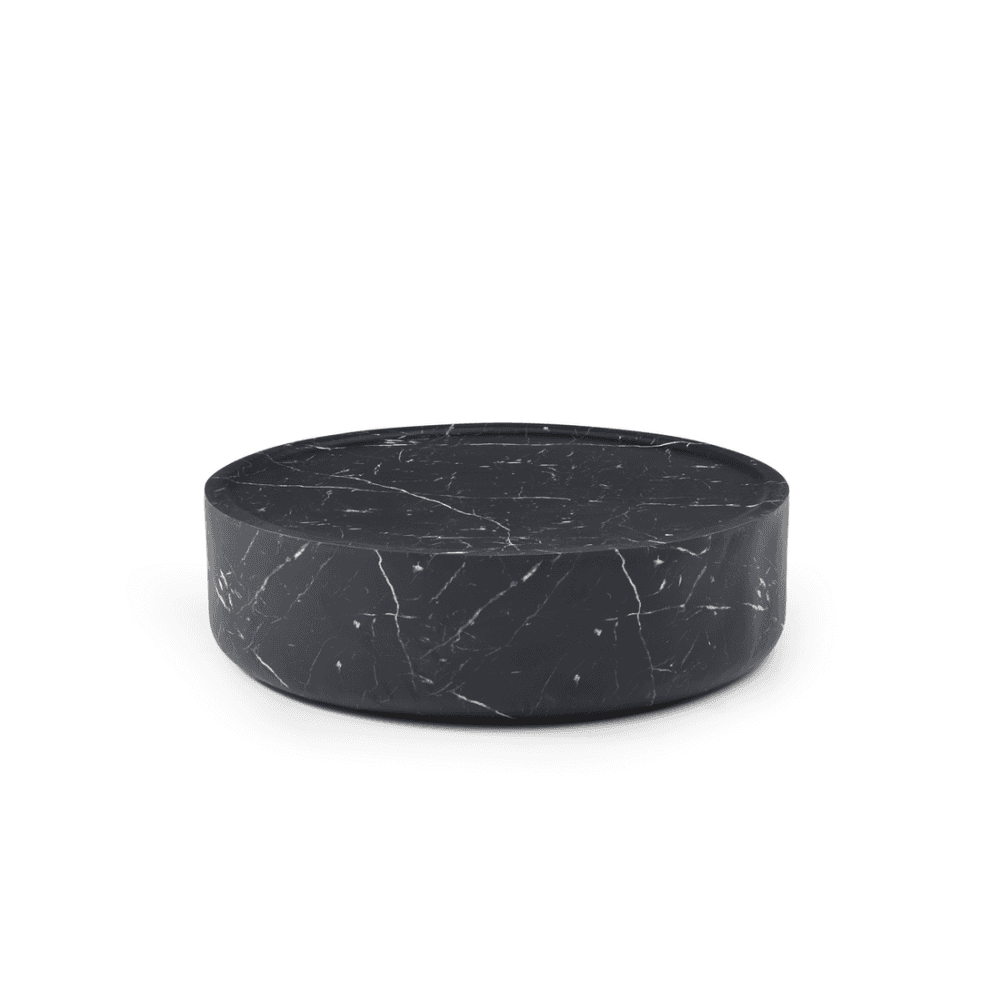 For those seeking an elegant statement piece, the Ciladro Coffee Table in faux black marble offers both style and substance. Its deep, matte black surface with a soft stone-like texture provides a sophisticated contrast to light or dark interiors. The rounded shape creates a harmonious and balanced visual appeal, while the durable construction ensures the table is as practical as it is beautiful.
