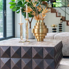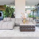 Bring bold sophistication to your living space with the Claremont Coffee Table. Crafted with a geometric dark wood base, this statement piece is as sculptural as it is functional. The striking square design is topped with a luxurious travertine slab, offering natural texture and timeless elegance.